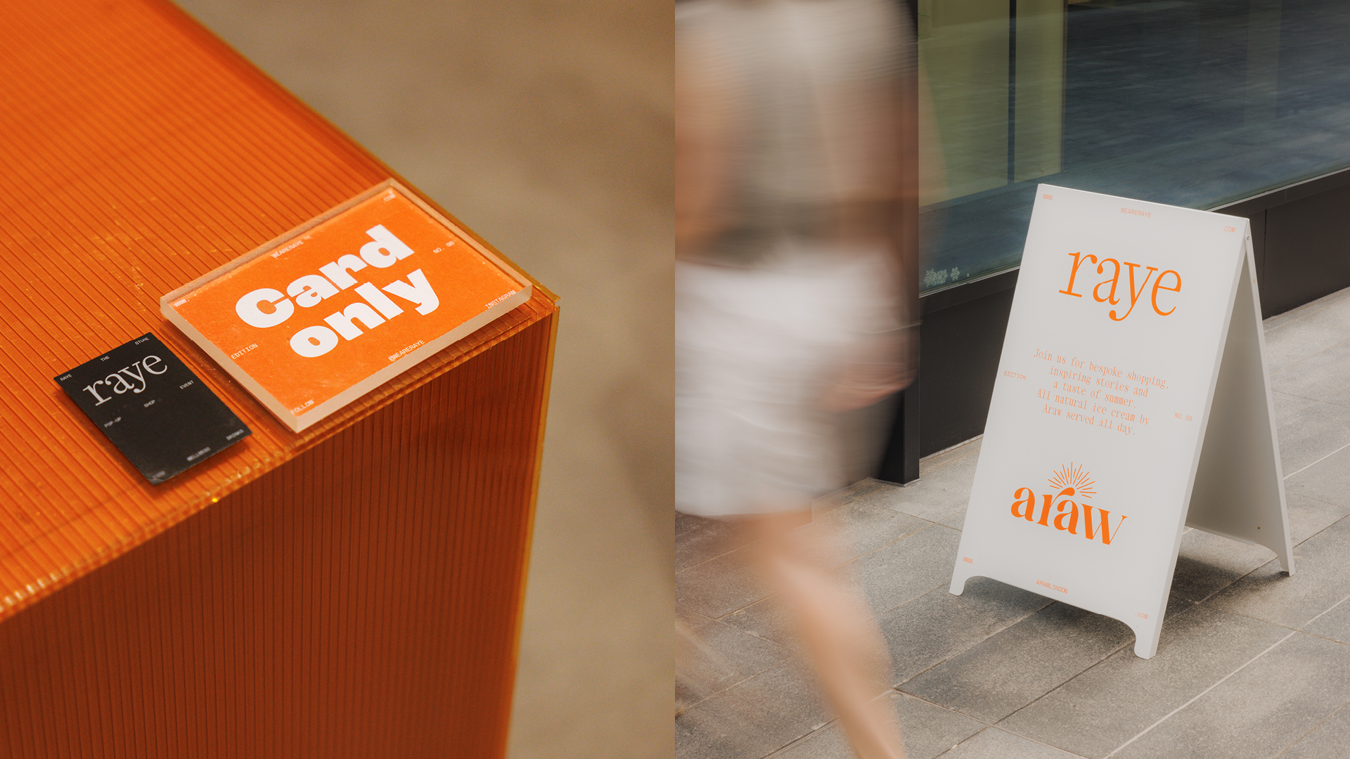 Based on a minimalistic grid system, the typographic identity is flexible to adapt a fresh look from edition to edition. So far, eight pop-up events have been taking place in the birth city of raye — London, UK. Each one has been branded with a signature color and typeface, which together with the iconic grid system formed the basis for the unique look.