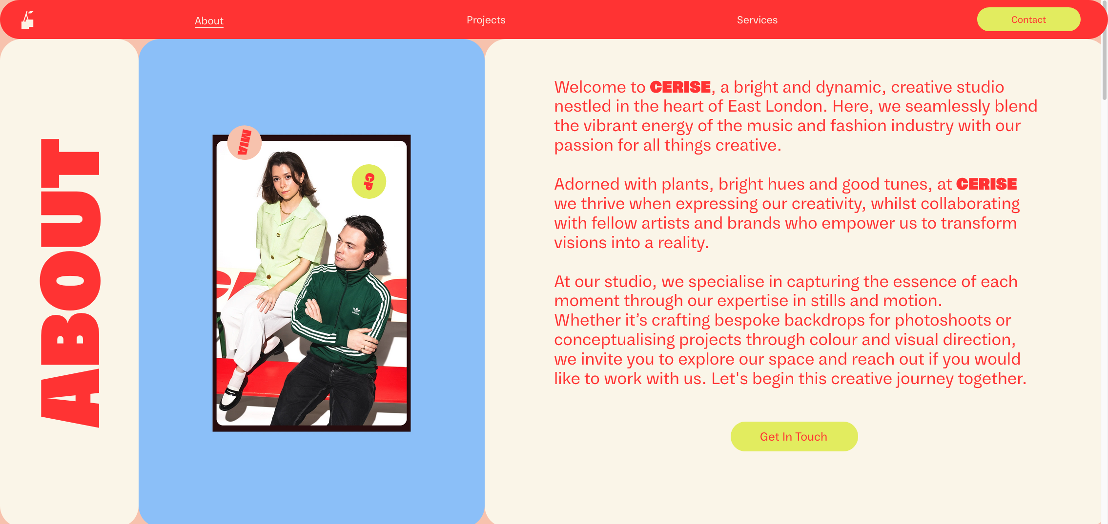 Welcome to CERISE, a bright and dynamic, creative studio nestled in the heart of East London. Here, we seamlessly blend the vibrant energy of the music and fashion industry with our passion for all things creative.