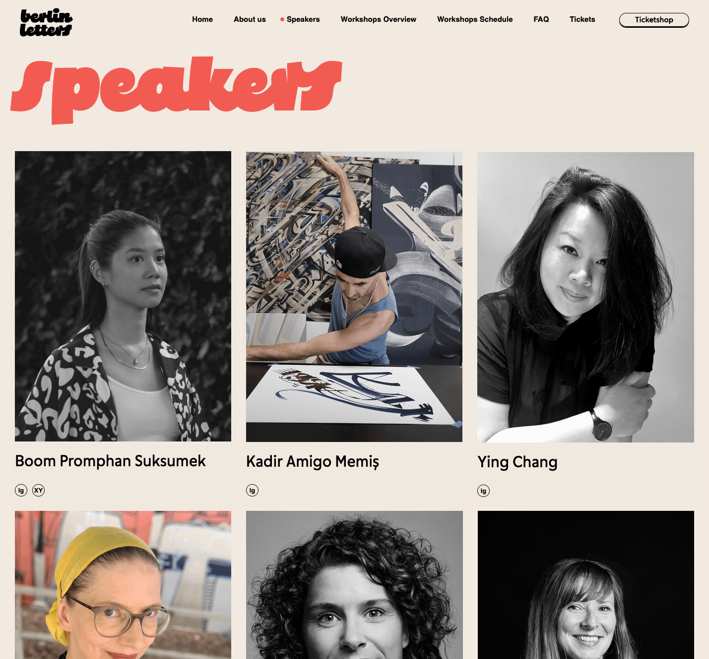 The logotype was drawn by Chris Campe, a designer, author and educator living in Hamburg. She also created an animated version, using a technique she’ll share in one of the workshops. Chris subsequently extended the cheerful bold script letters into a full (lowercase) alphabet, plus basic punctuation. This custom font named Berlin Letters Script serves for headlines on the Berlin Letters website. It’s paired with TOS Sans, a low-contrast sans with vertically cut terminals, started by Bernd Volmer – Berlin-based type designer and speaker at the first edition – around 2020. Named after its original licensee, The Organic Store, TOS Sans is work in progress and yet unreleased.