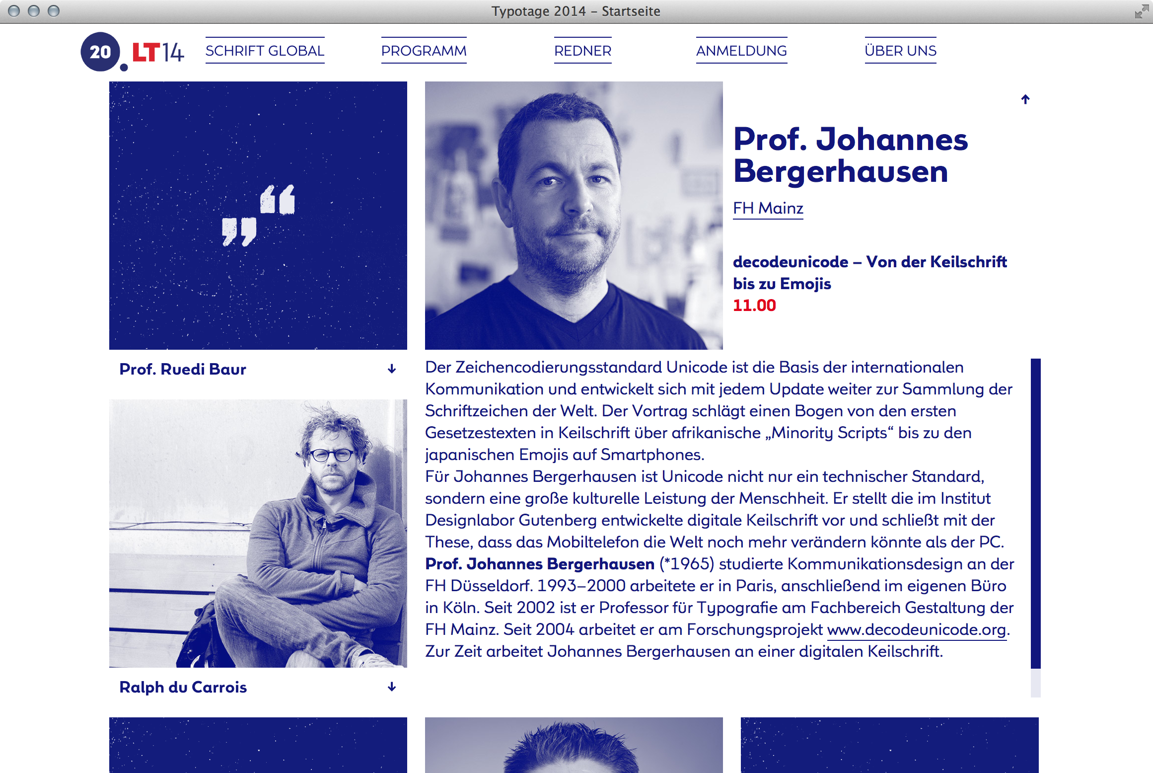 The Leipzig “Typotage” type conference takes place since 1995 in the printing museum, first as a two or three day fest, since 2008 as a one day event. After many years of changing looks, Maurice Göldner and Susanne Richwien gave the Typotage a new and current design. The website, realised by Zentrumwest, makes great use of Thomas Thiemich’s typeface Remo, published by Ourtype. (As an aside, Göldner and Thiemich, as well as Peter Mohr and Monique Dickmanns of Zentrumwest, studied typeface design in Leipzig with Fred Smeijers.)