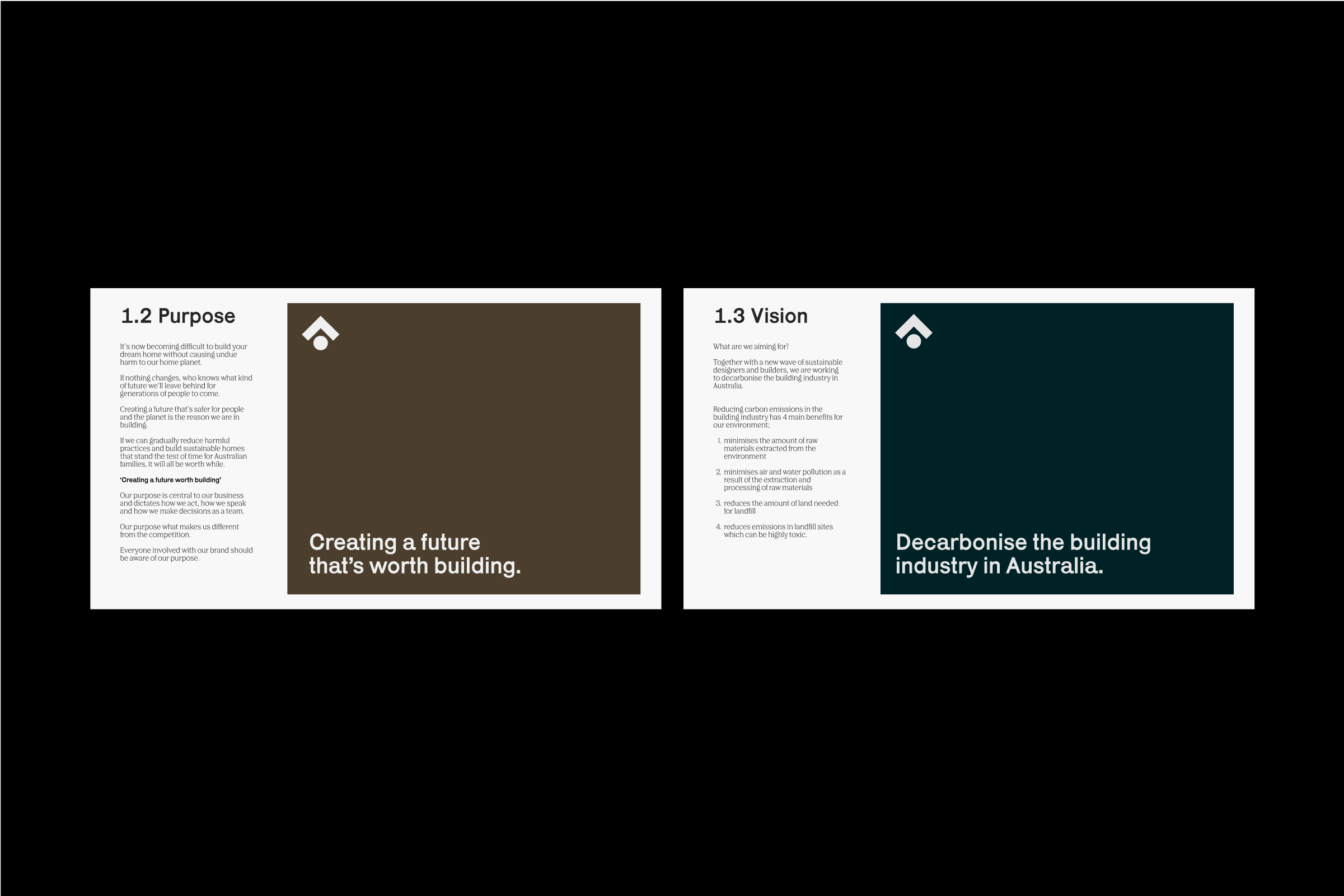 Beginning with a strategic approach, we crafted the brand idea of “A Future Worth Building” to guide our visual expression of the brand’s identity. Early on, we explored design solutions that moved away from the standardized/formal typography that we saw being regularly used by traditional building firms. Karrik was used for the brand’s logo and primary typeface for its authentic charm and visual irregularities that resemble forms found in natural environments. It is supported by Nib in its light style for the body text. Overall, the brand’s use of typography serves to visually support the brand’s purpose, reinforcing its commitment to sustainable building that serves local communities and our home planet.