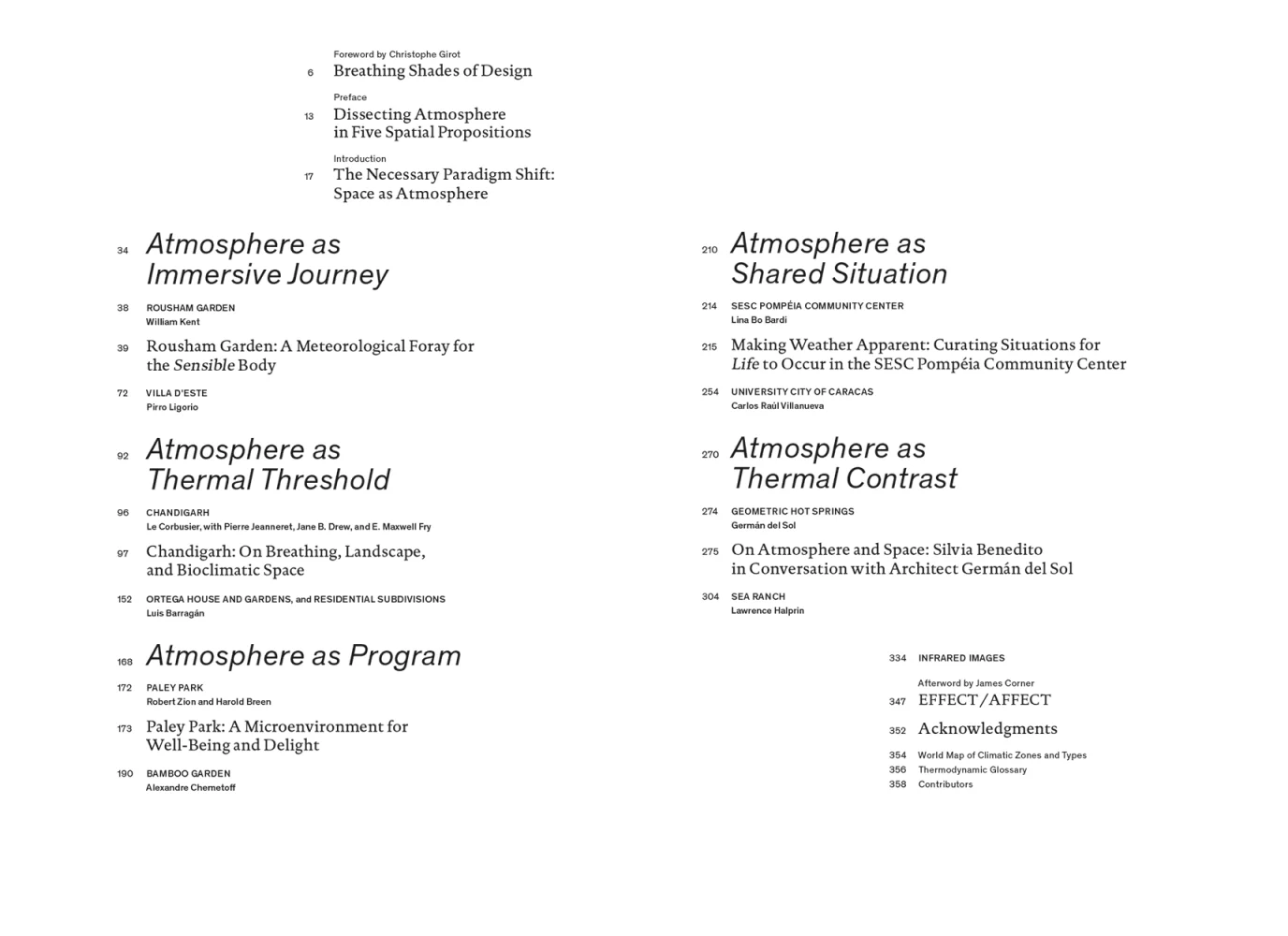 How will the human body, collective and individual, cope with the estimated increases in global air temperatures and in the earth’s corresponding thermal stress? Atmosphere Anatomies: On Design, Weather, and Sensation offers an in-depth examination of design strategies that situate the body and its bioclimatic milieu at the core of their spatial formation.