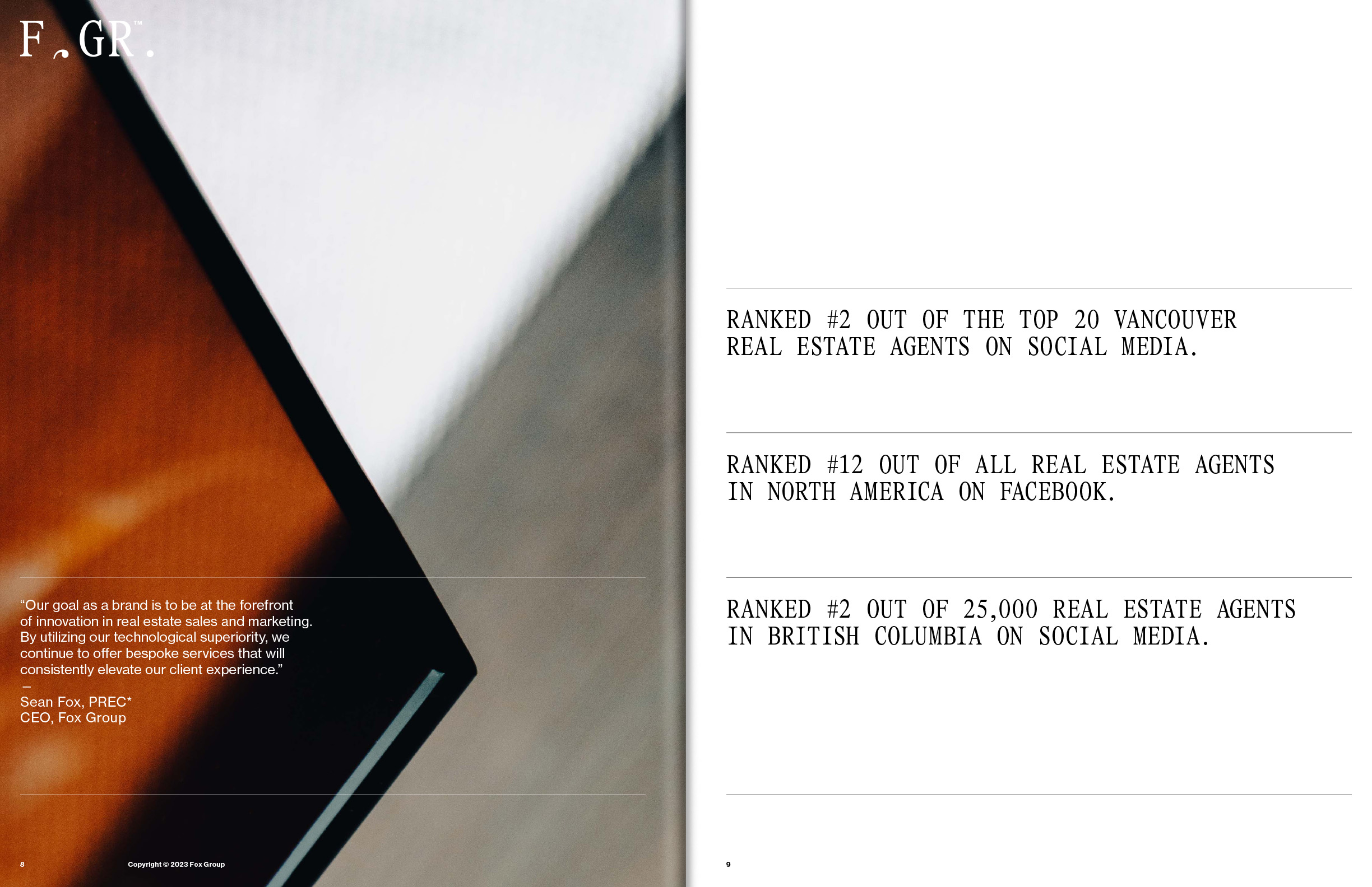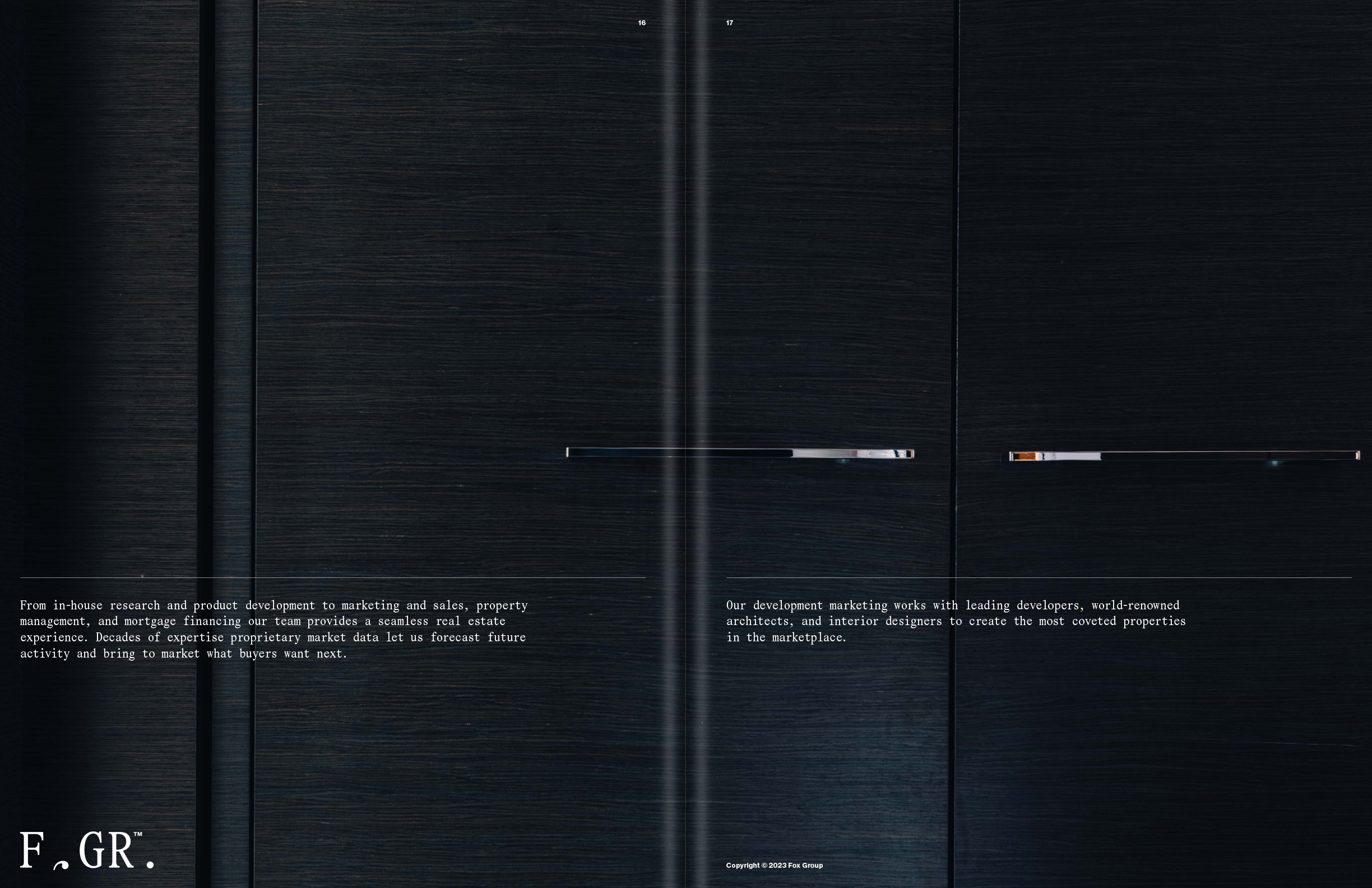 Fox Group visual identity and editorial design Contributed by Matija Gabrilo on Apr 30th, 2024. Artwork published in 2023. Matija Gabrilo. License: All Rights Reserved. In the visual identity and editorial material for Vancouver-based Fox Real Estate Group, a condensed version of Pantasia Novus SFRG Regular, custom made by Wei Huang, is paired with Neue Haas Grotesk Regular. Matija Gabrilo. License: All Rights Reserved. Matija Gabrilo. License: All Rights Reserved. Matija Gabrilo. License: All Rights Reserved. Matija Gabrilo. License: All Rights Reserved. Typefaces More about PantasiaGet PantasiaMore about Neue Haas GroteskGet Neue Haas Grotesk Formats Branding/Identity (8451) Booklets/Pamphlets (2398) Topics Architecture (1412) Business/Finance (772) Designers/Agencies Matija Gabrilo (11) Tagged withreal estate (141)identities (2354)corporate brochures (168)all caps (7608)monospaced (1237)custom typefaces (839) Artwork location Canada (814) Vancouver (70) In Setsnon-letters (Matthijs Sluiter) (56)my type (Sophia Brinkmann) (245)Skybar (Rafael Versiani) (6)Logo (Lucas Bevilaqua) (75)Serif Mono (Lucas Bevilaqua) (5)bb (Leonardo de la Fuente) (1331) Post a comment Name Email – will not be published Website Your response Submit Comment More Pantasia in use 100 beste Plakate 232023Studio EsContributed by Maxitype Le Chalet de l’Inconnu2024eschenlauer sinicContributed by eschenlauer sinic Staff Pick HBKsaar yearbook 20242025Manuel WeselyContributed by Manuel Wesely Staff Pick Sponsor More in Architecture М-464: unrecognizable individuality2021Pavel KedzichContributed by Pavel Kedzich Al-Maqsad ad by City Edge Developments2021unknownContributed by Eyad Al-Samman DBLV Architecten2022WITTContributed by harrison marshall Materra brandingc. 2023Studio SizeContributed by Studio Size More in Booklets/Pamphlets 1937 Nash brochure1937unknownContributed by Stephen Coles City of Cologne corporate designc. 2005Die ArtdiktatorenContributed by Nikolai Arnaudov Théâtre des Bouffes du Nord, 2016–172016Violaine & JérémyContributed by VJ-Type Staff Pick From Paris to Berlin. The German Cocktail Book2013Martin LavielleContributed by Martin LAVIELLE More Fonts In Use Hank Mobley – Dippin’ album art1965Reid MilesContributed by Rob Hudson Staff Pick Jan Toorop, Charley Toorop & Edgar Fernhout exhibition catalog1971Loridan StudioContributed by Thomas Van Herck Staff Pick Tíscar Espadas – Capítulo IV2022Massimiliano AudretschContributed by Moritz Appich Staff Pick Young Cage: Sounds of Halberstadt / Sounds of Venice2024Thea KleinhempelContributed by Thea Kleinhempel Staff Pick
