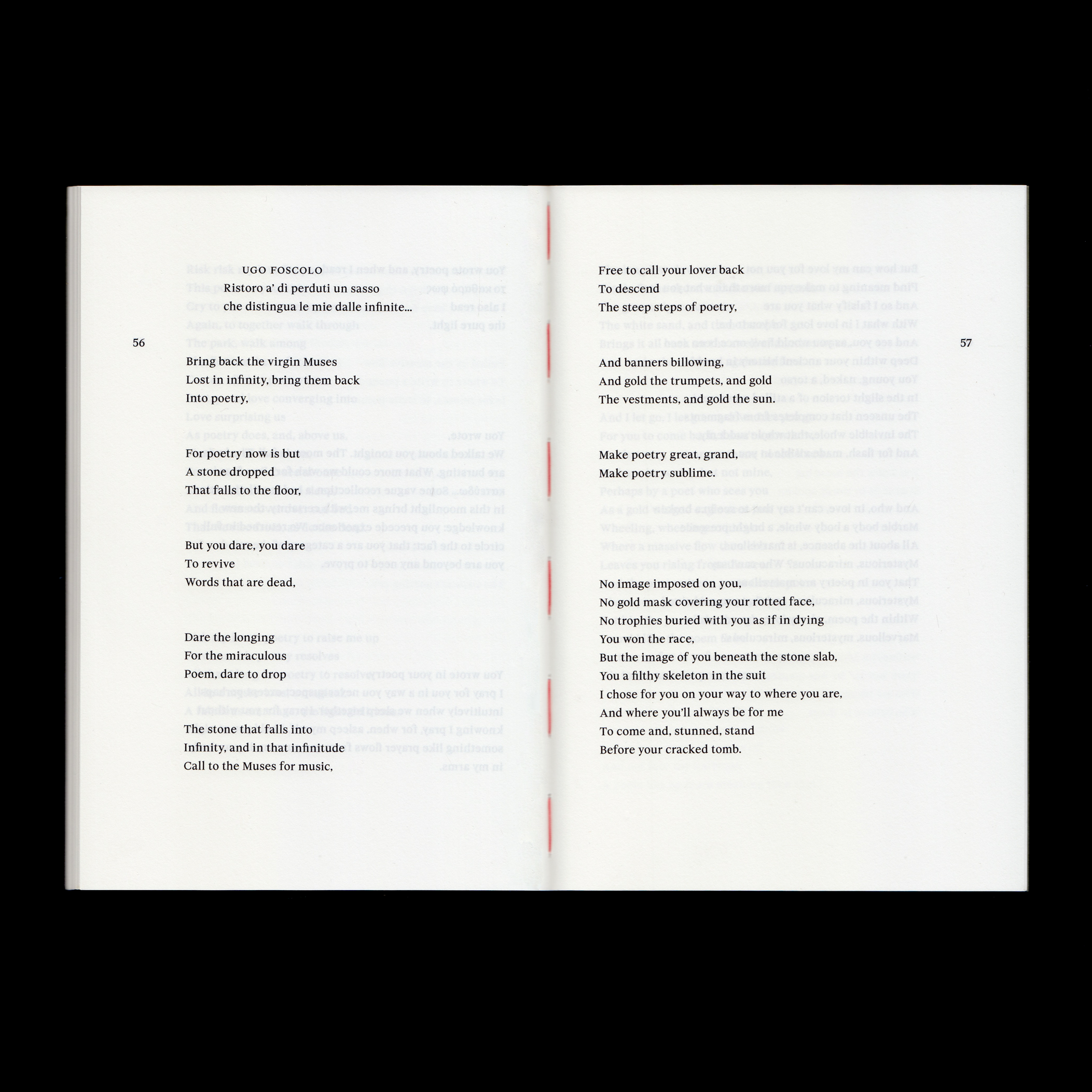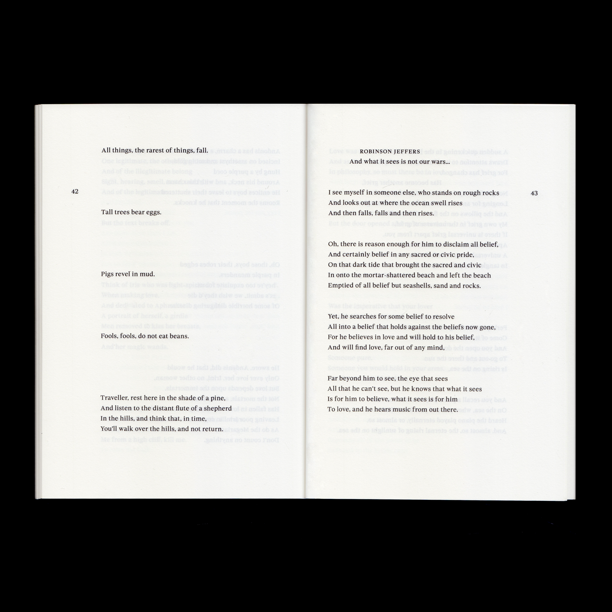 Poems to a Greek Lover by David Plante Contributed by Jack Niblett on Jun 18th, 2024. Artwork published in circa April 2024. Source: www.wolfehall.com © David Plante, 2024. License: All Rights Reserved. A 62-page poetry book written by David Plante, designed by Wolfe Hall with Gregorio Magnani. Proofed by Anna Lisa Reynolds. Edition of 200, self-published by David Plante, 2024. The book solely uses an early version of BST Spyre, released by British Standard Type in 2024. This is one of the first printed and documented uses of BST Spyre, utilizing a single weight—medium—across the entire publication. Source: www.wolfehall.com © David Plante, 2024. License: All Rights Reserved. Source: www.wolfehall.com © David Plante, 2024. License: All Rights Reserved. Source: www.wolfehall.com © David Plante, 2024. License: All Rights Reserved. Source: www.wolfehall.com © David Plante, 2024. License: All Rights Reserved. Source: www.wolfehall.com © David Plante, 2024. License: All Rights Reserved. Typefaces More about BST SpyreGet BST Spyre Formats Books (6479) Topics Literature (3005) Designers/Agencies Wolfe Hall (2) Gregorio Magnani (1) Tagged withbook covers (5820)poetry (388)book interiors (3626)book spines (1593)small caps (189)title pages (1028)artist’s books (114)early uses (2206)sewn bound (101)David Plante (1)one typeface (1746)ragged right text (1012)self-published (302) Artwork location United Kingdom (3264) London (1805) In Setseditorial (miguel anønimo) (137)Moodboard (eschenlauer sinic) (256)SAGESSE (papier charbon) (4)1 (Rodrigo) (152) Post a comment Name Email – will not be published Website Your response Submit Comment More in Literature The Road to Los Angeles, Black Sparrow Press edition1985Barbara MartinContributed by Stephen Coles Staff Pick Dijk by H.M. van den Brink2016Tessa van der WaalsContributed by Tessa van der Waals Staff Pick Pioniere des Kosmos by Gordon R. Dickson (Terra)1973Frank Kelly FreasContributed by Pirx Sponsor More in Books L’espace est un doute by Jules Hidrot2024Jules HidrotSarah FattouhContributed by Blaze Type Manifiesto del Dibujo by Sofía F. Garabito2020Nicolas SagredoContributed by Diego Aravena Pepper Cakec. 2023Ilka GilvesyContributed by Ilka Gilvesy Staff Pick Letters from Jail by Ted White2021John D. BerryContributed by John D. Berry More Fonts In Use Pearl Jam at Hyde Park concert poster2022Pedro CorreaContributed by Erica Jung Staff Pick Bon Appétit, “The Restaurant Issue”, October 20212021Walter GreenAlex MadridChrista GuerraContributed by Jamie Otelsberg (OH no Type Co.) Staff Pick Sam & Dave – The Best of Sam & Dave album art1969Stanisław ZagórskiContributed by Robby Rhodes Staff Pick Star of Gypsies by Robert Silverberg (Donald I. Fine)1986Loretta TrezzoContributed by Florian Hardwig Staff Pick Will Self book coversGreg HeinimannContributed by Indra Kupferschmid Staff Pick John Finnegan ice signc. 1910unknownContributed by Briar Levit Staff Pick National Pork Board logos, 1987 & 20051987BozellCampbell MithunContributed by Stephen Coles Staff Pick GOG – Gäste Ospiti Guests ws 22/23 at unibz2023Michele GalluzzoContributed by Michele Galluzzo Staff Pick