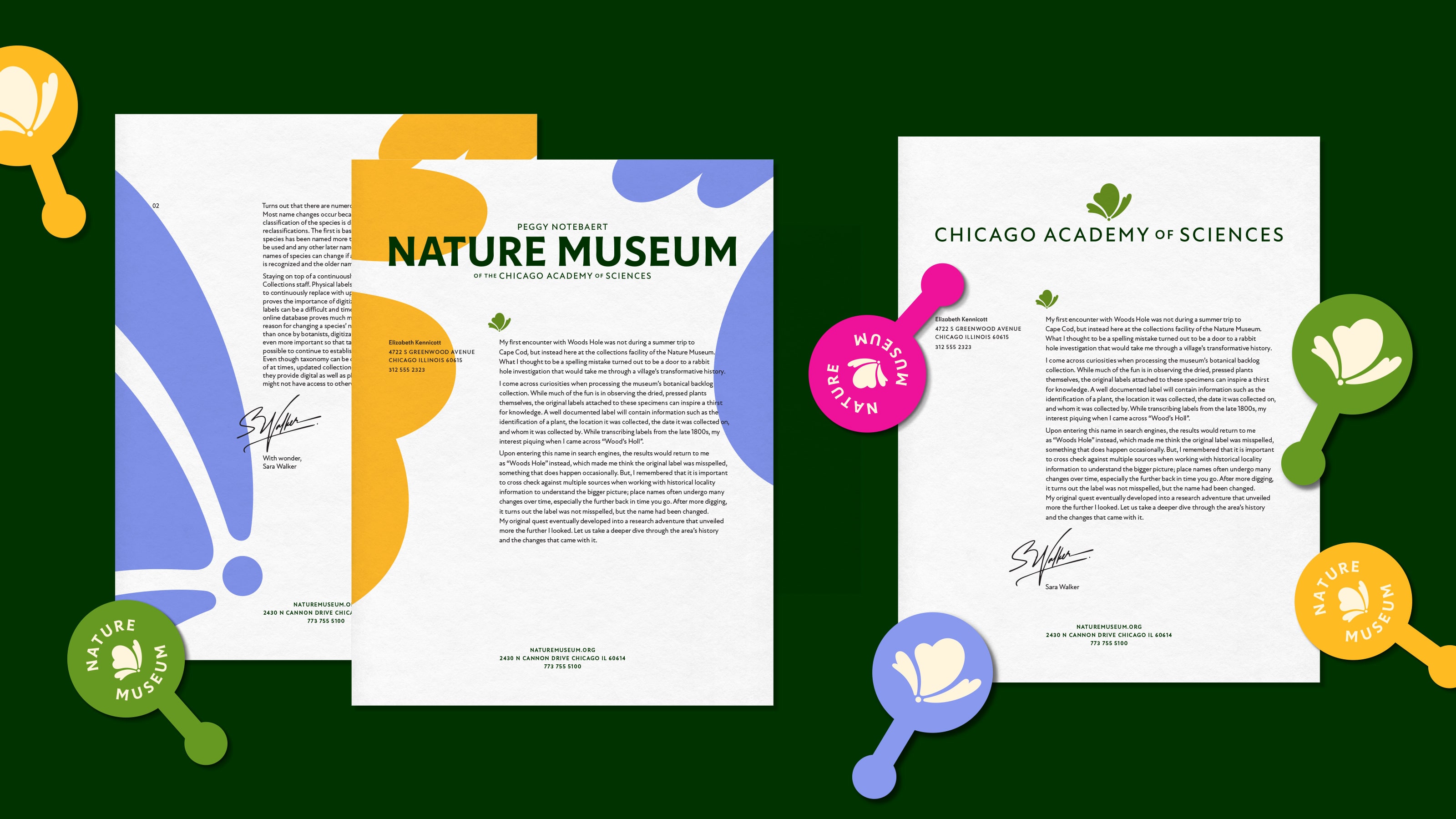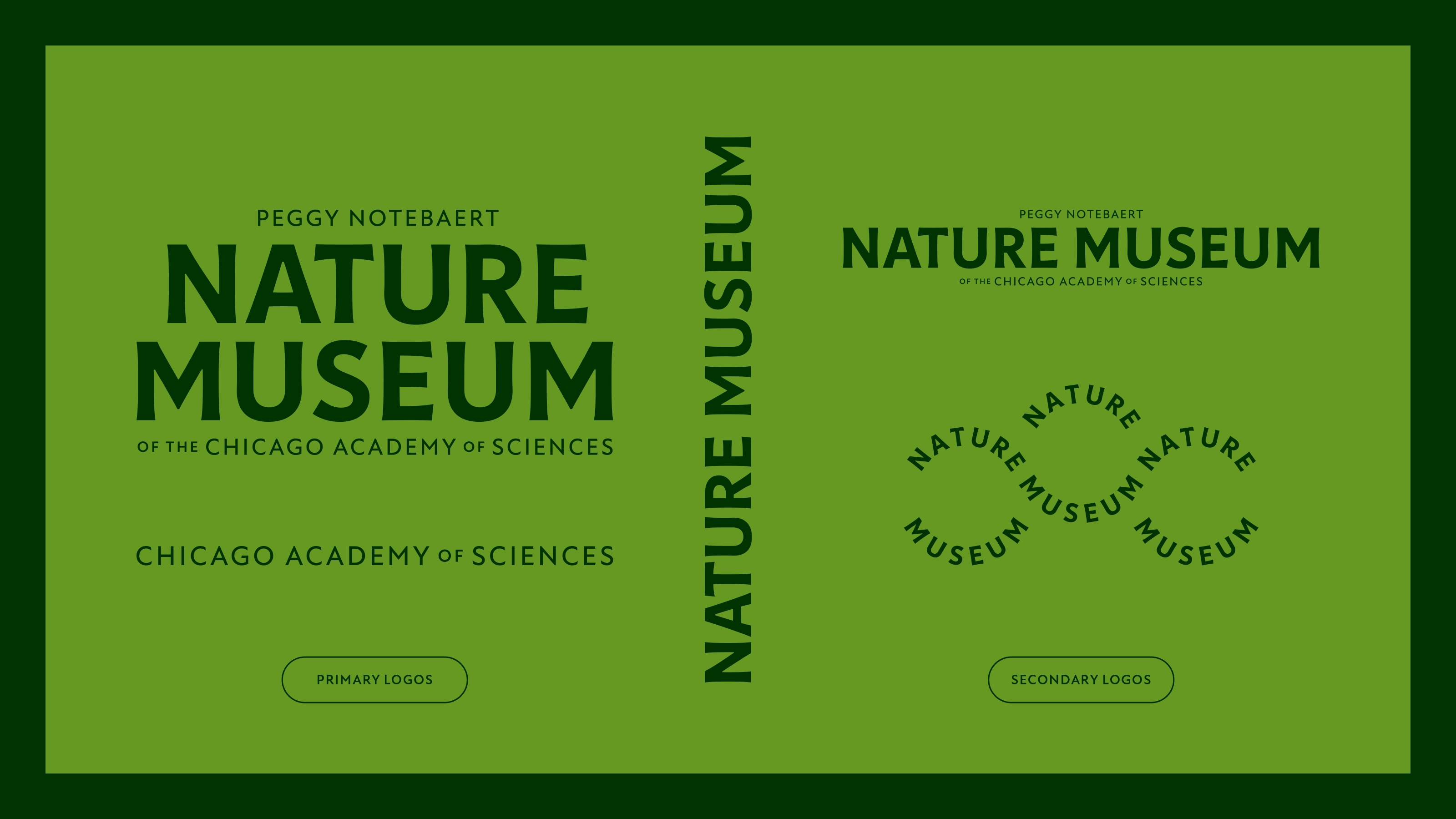 The straightforward, confident logo elevates the Nature Museum’s presence and communicates in an accessible, inclusive voice while linking the museum to the Chicago Academy of Sciences.