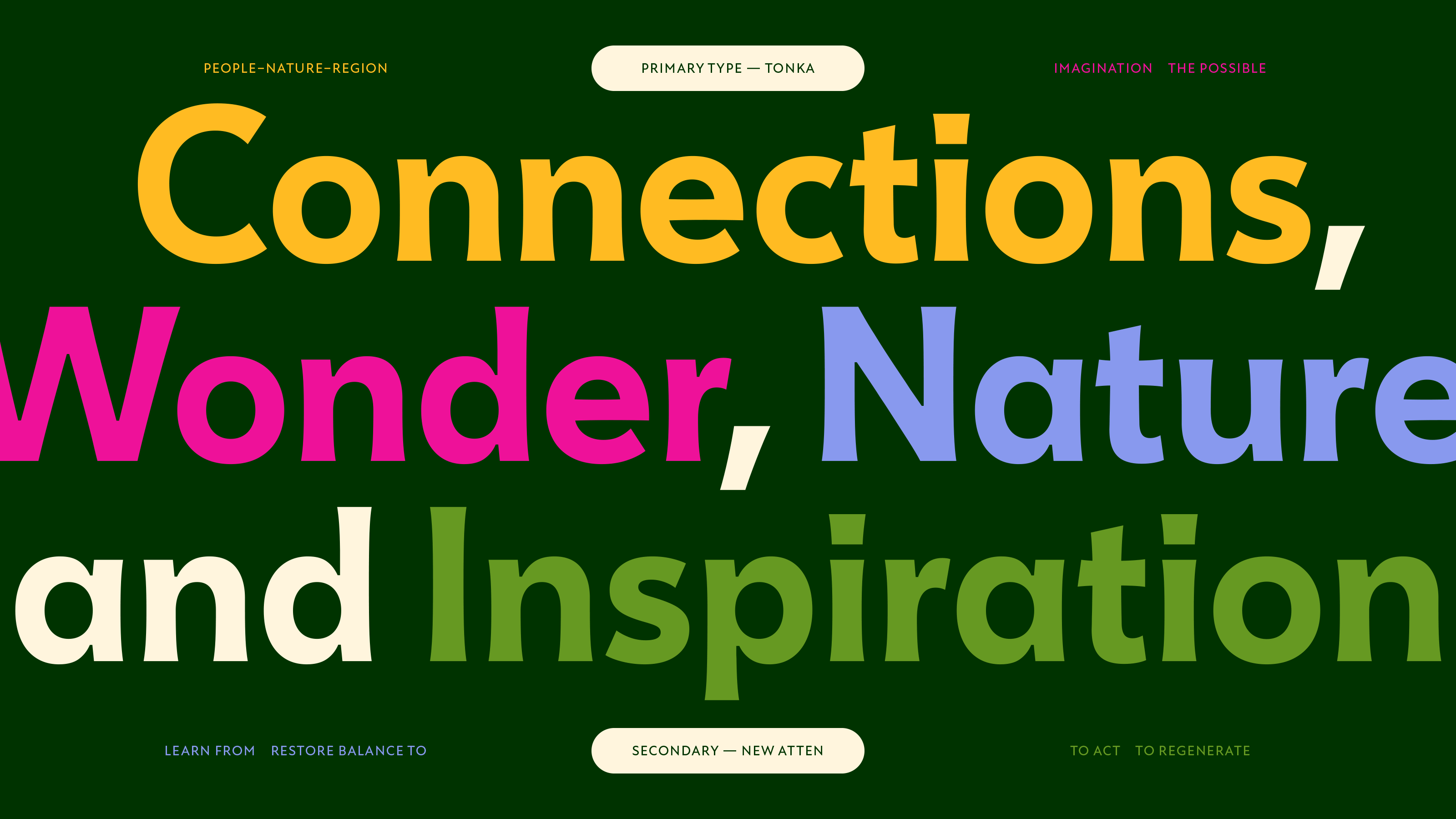 Span crafted the wordmark using Céline Hurka’s typeface Tonka, whose flaring stems convey a historic, organic essence — symbolizing the museum’s dedication to nature and environmental leadership. The complementary font, Miles Newlyn’s New Atten, is a charming humanist sans-serif inspired by the voice of naturalist Sir David Attenborough.