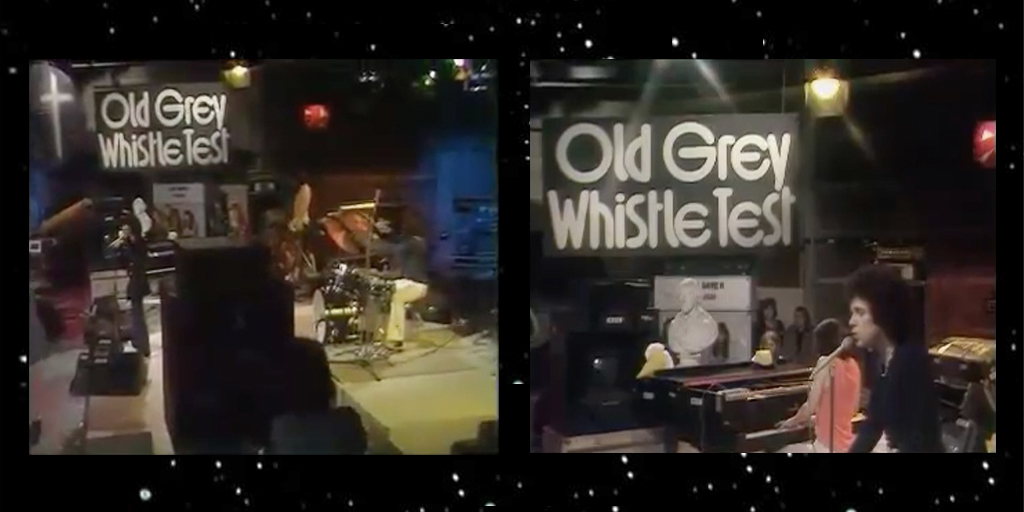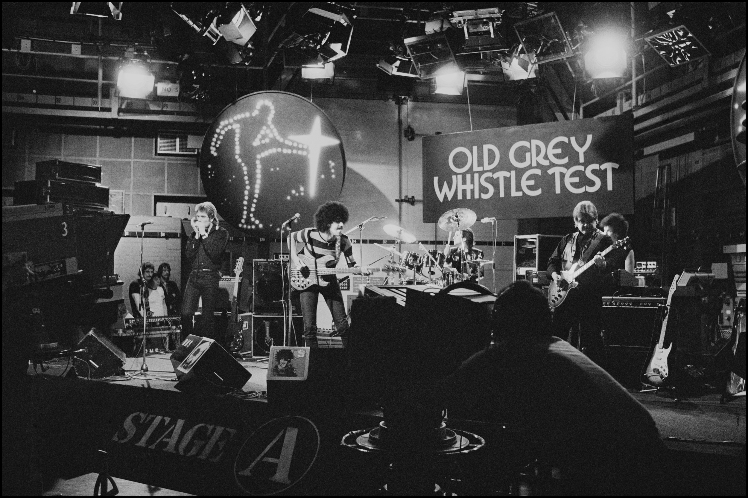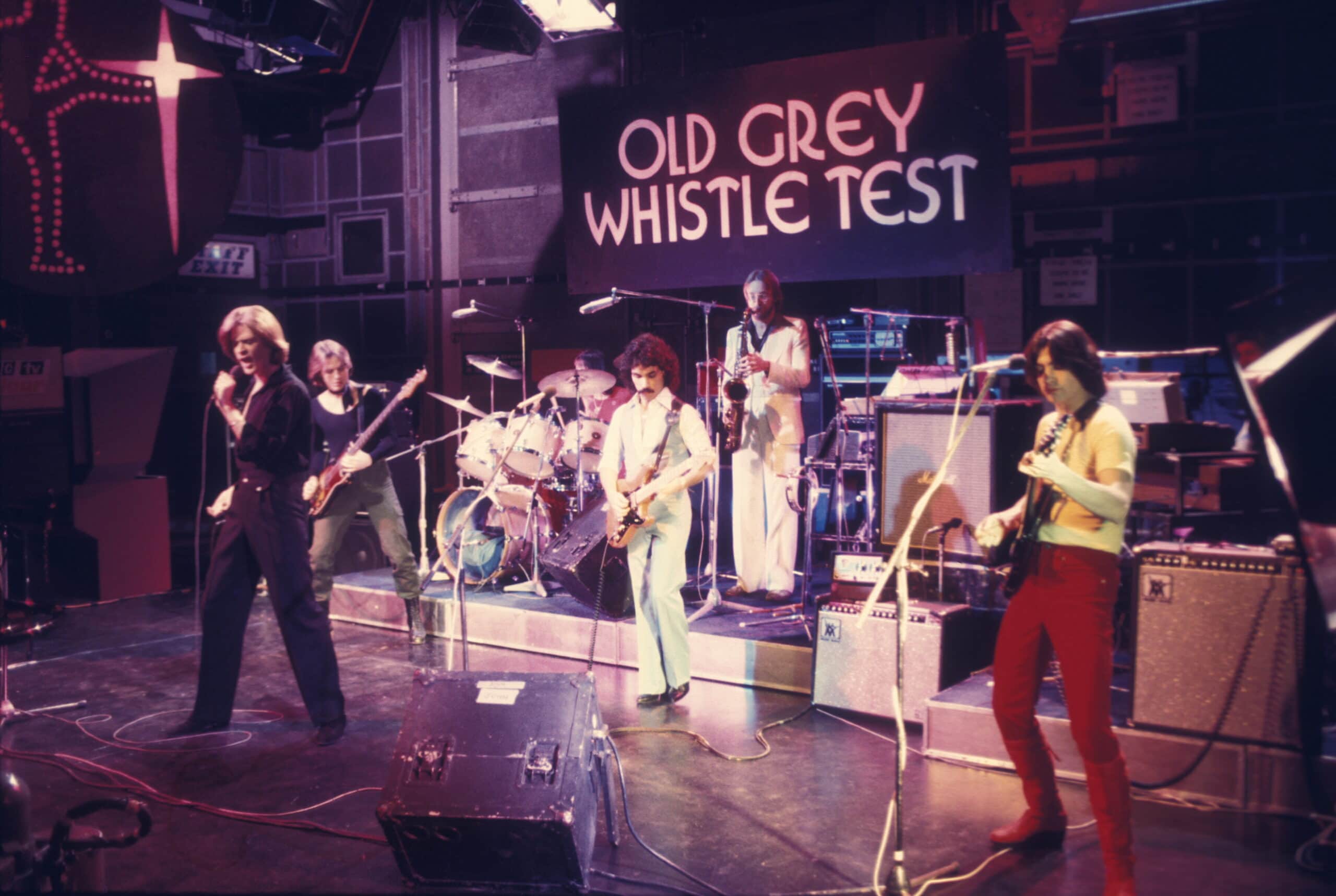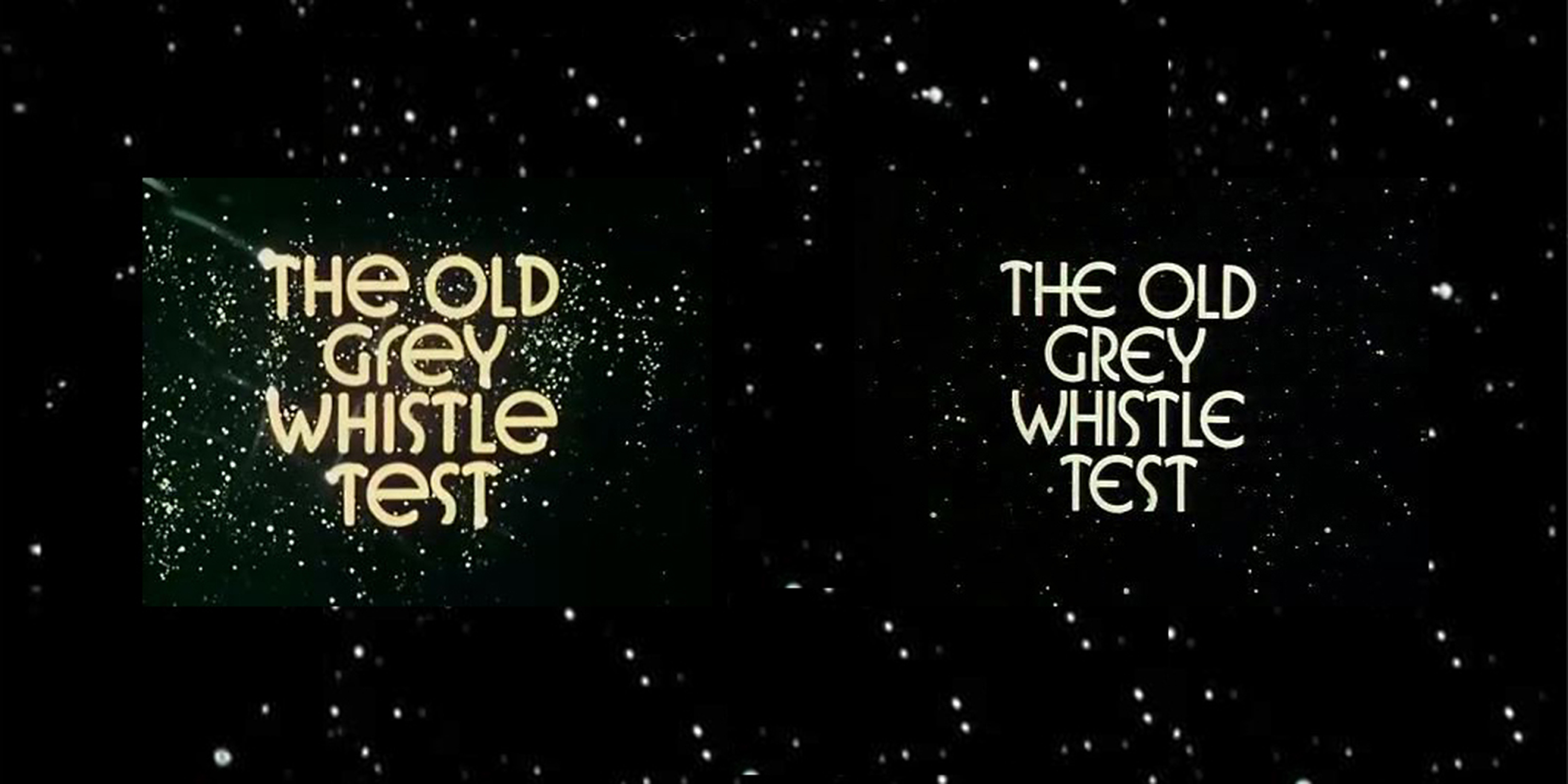 Banner and titles for UK music television show The Old Grey Whistle Test which ran from 1971 to 1988 on the BBC. According to presenter Bob Harris, the programme derived its name from a Tin Pan Alley phrase from years before.