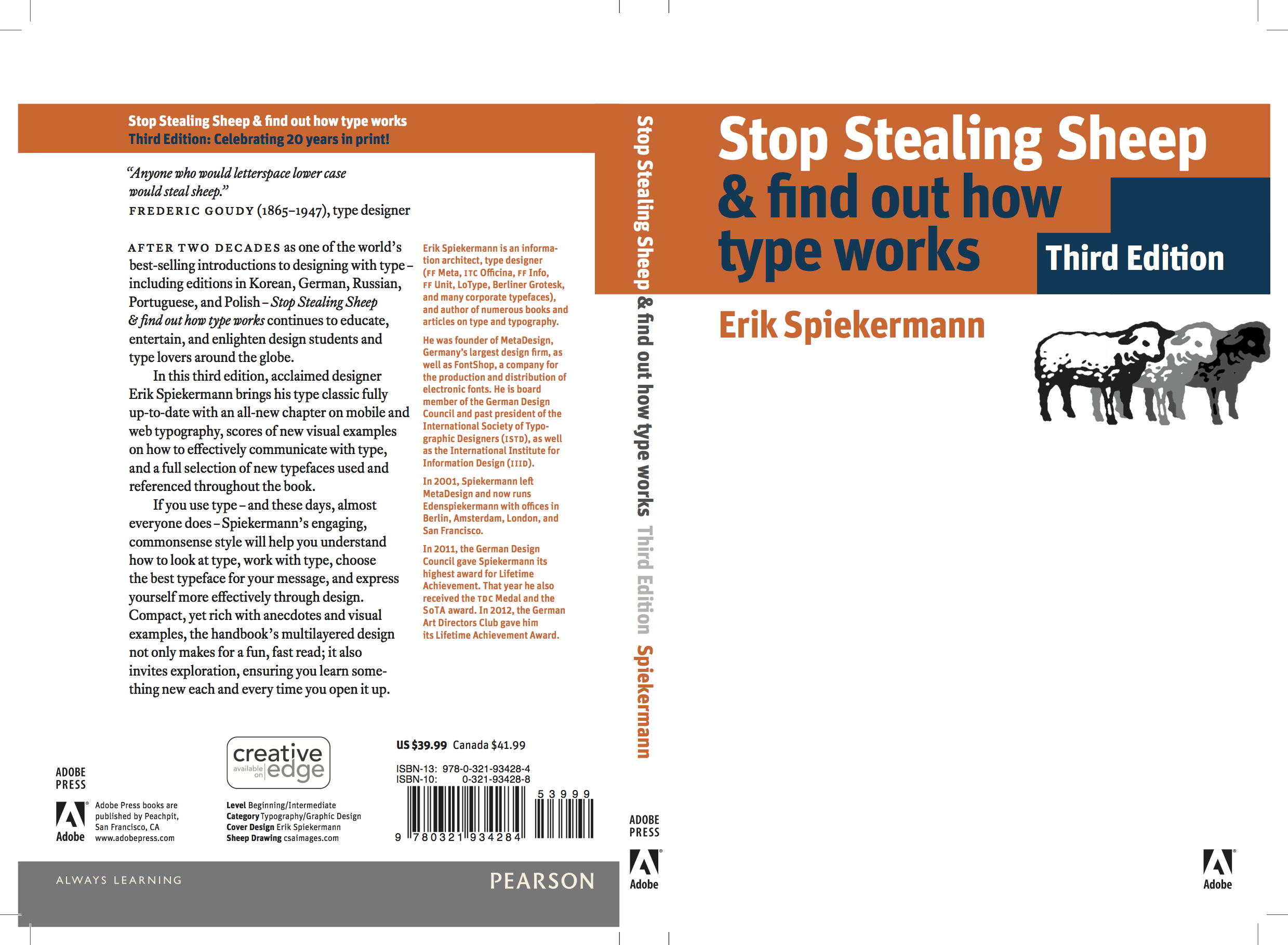 Stop Stealing Sheep 3rd Edition Contributed by Stephen Coles on Feb 19th, 2014. Artwork published in 2013. Source: spiekermann.com License: All Rights Reserved. Typefaces More about FF UnitGet FF UnitMore about EquityGet Equity Formats Books (6480) Topics Graphic Design (2991) Education/Academia (2171) Designers/Agencies Erik Spiekermann (15) Tagged withAdobe Press (1)Erik Spiekermann (3)Peachpit (1)about type design (322)guides (152)instructional (103)book covers (5820)back covers (2231)sheep (19) Artwork location United States (9844) Belvedere (1) San Francisco (339) Post a comment Name Email – will not be published Website Your response Submit Comment More FF Unit in use EdenSpiekermann Brand Display2013EdenspiekermannContributed by Noël Maasdam Carmen. Cerámica e Iconografía by José Ignacio Vélez Puerta & Esteban Duperly2021MesæstándarContributed by Bastarda Type Foundry Internationale Spieltage SPIEL2012Stefan ZimmermannContributed by Stefan Zimmermann Sponsor More in Graphic Design Typ-ound manifesto poster2016Jae EeContributed by Aamina Ganser Sociotype Journal, issue #2: “Makeshift”2022SociotypeContributed by Joe Leadbeater Invisibles bookletc. 2020Lara Martínez MagánAntonio Lajara SánchezContributed by A Lajara 5Berge Poster Series2013David GobberContributed by Florian Hardwig Staff Pick More in Books Sur la page abandonnés, Vol. 32019Atelier Choque Le GoffContributed by Blaze Type Crash: Homage to JG Ballard at the Gagosian Gallery2010Graphic Thought FacilityContributed by Florian Hardwig Staff Pick Next Stop Mars2020Alex DarbyshireContributed by Alex Darbyshire The Harder They Come by Michael Thelwell1980VanZee AssociatesContributed by Florian Hardwig More Fonts In Use Die Neue Fotografie at Gewerbemuseum Basel exhibition poster1931unknownContributed by Philipp Messner Staff Pick German Design Conference2012Kaune & HardwigContributed by Nina Stössinger Staff Pick Bureau Postal d’Orsay2019Ateliers Saint-LazareContributed by Production Type Staff Pick Druk magazine, “Met één been in het verleden”1999Jan MiddendorpContributed by Richard Lipton Staff Pick