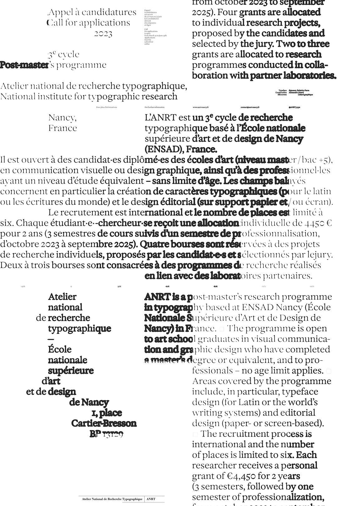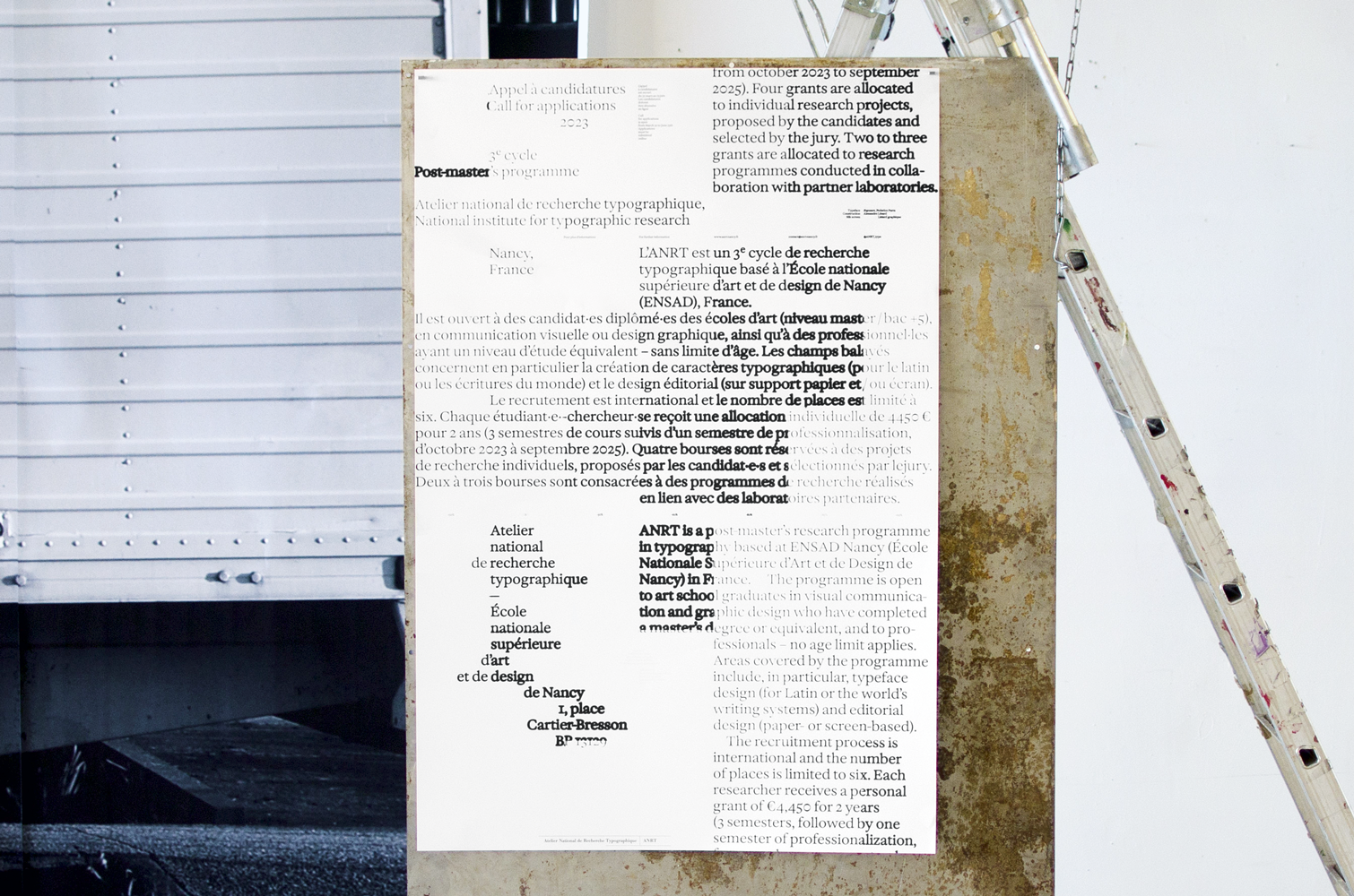 Each year, the ANRT (Atelier national de recherche typographique) in Nancy, France, publishes a poster for its call for applications. The poster must be designed by a student and is chosen by the teaching team.