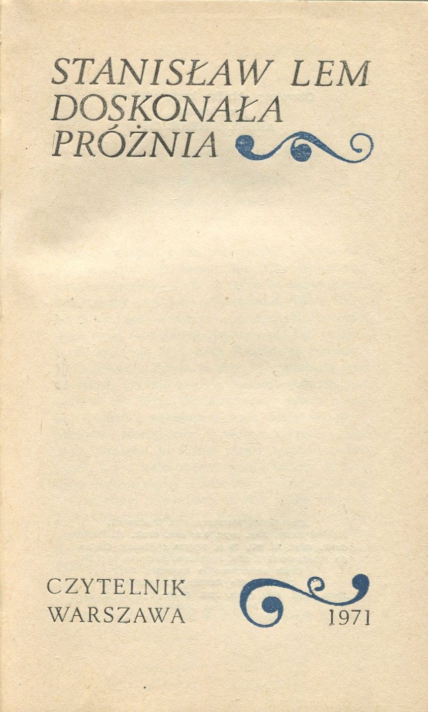 First edition of Stanisław Lem’s Doskonała próżnia, published by Czytelnik in 1971, with dust jacket and cover designed by Andrzej Heidrich. From Wikipedia: