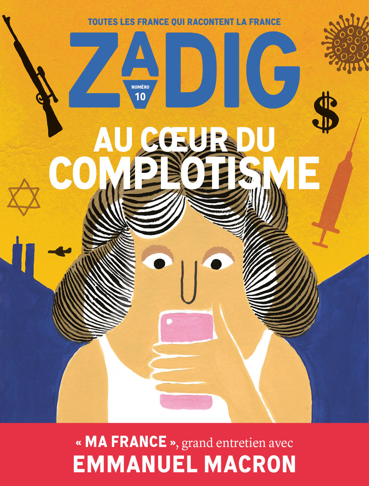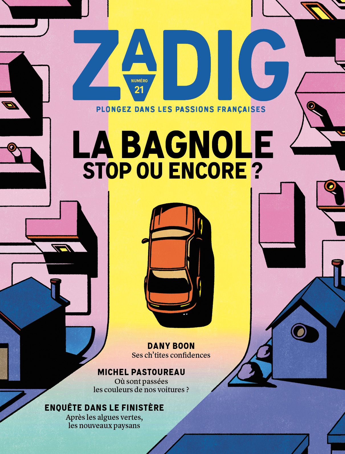 Zadig wants to tell France through the lenses of the many Frances in existence. Every issue revolves around one topic that will be reflected by authors from the most diverse backgrounds. The magazine is free from advertising and therefore – while easily available at newsstands and in bookshops – dependent on subscribers. Graphic design and production are high end, with carefully chosen paper, accurate layout and typesetting in conjunction with tasteful illustration and photography.