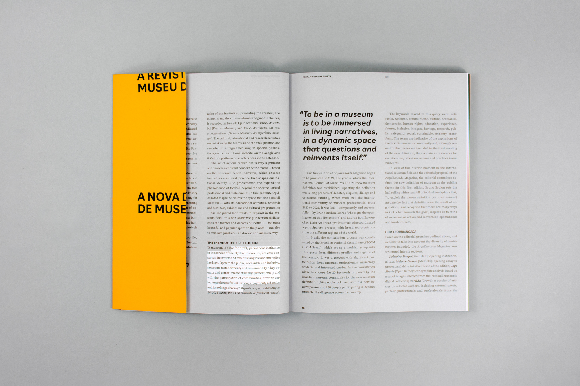 ARQUIBANCADA magazine claims the space that the Football Museum – with its educational activities, research and seminars, exhibitions and cultural programming – has conquered (and wants to expand) in the museum field. It’s a non-academic publication dedicated to the themes and debates of football – the most beautiful and popular sport on the planet – and also to museum practices in a diverse and inclusive way.