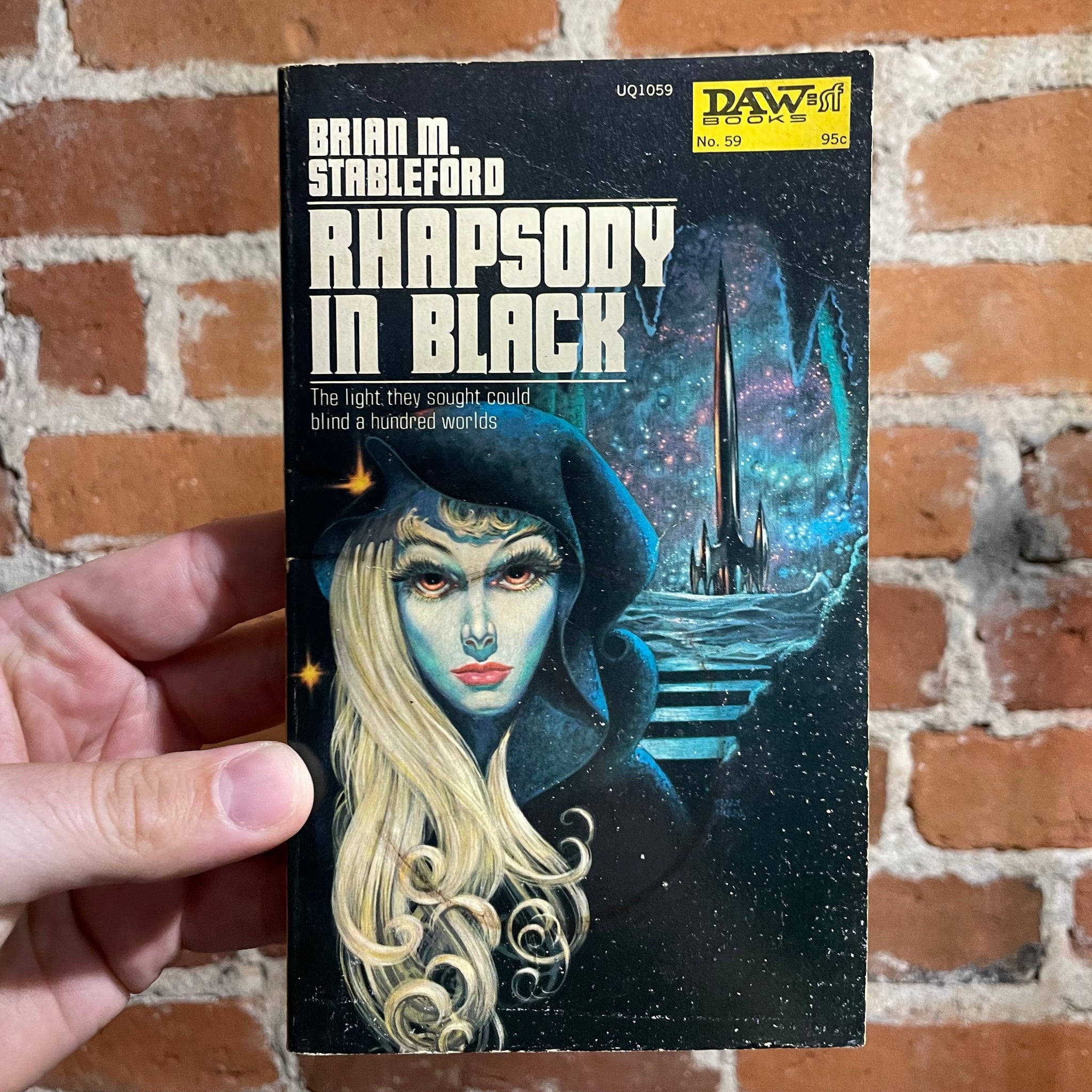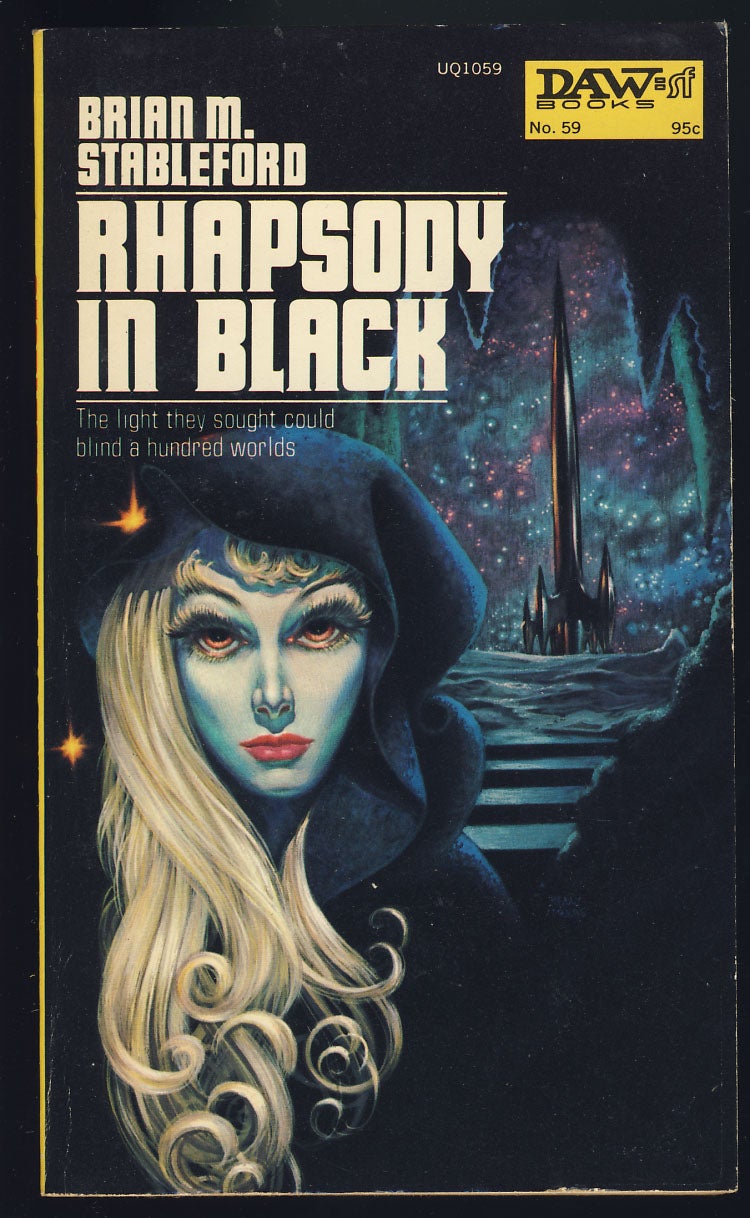 First edition of of Rhapsody in Black, a sci-fi novel written by Brian M. Stableford (1948–2024), published in 1973 by DAW Books.