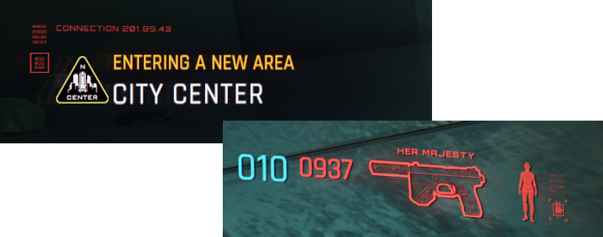 The game websites are set using Refinery and Blender. The former is used for headlines while the latter is used for both headlines and long text. Blender, Rajdhani and Orbitron are also used diegetically in the game’s world, reserved for physical digital screens and holograms. Either Night City’s designers are obsessed with these typefaces or its the standard in 2077.