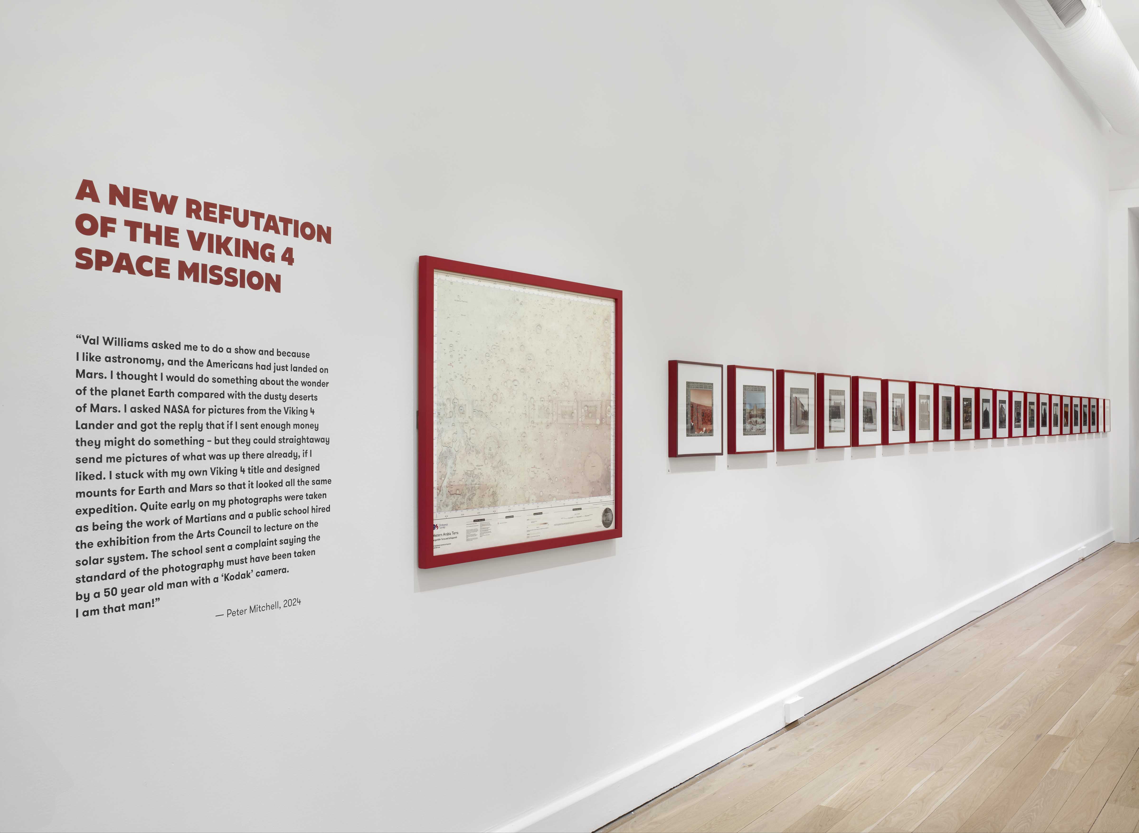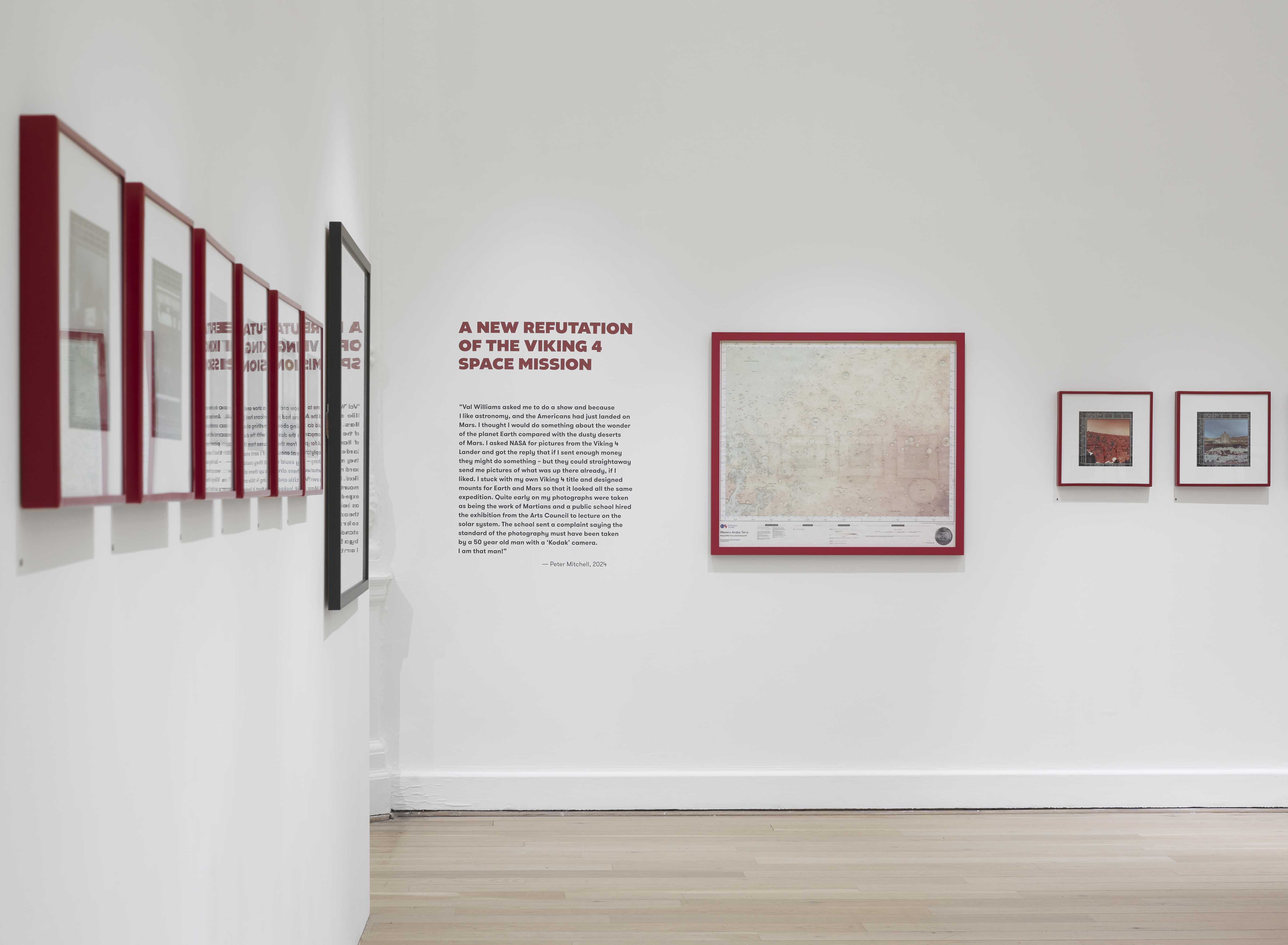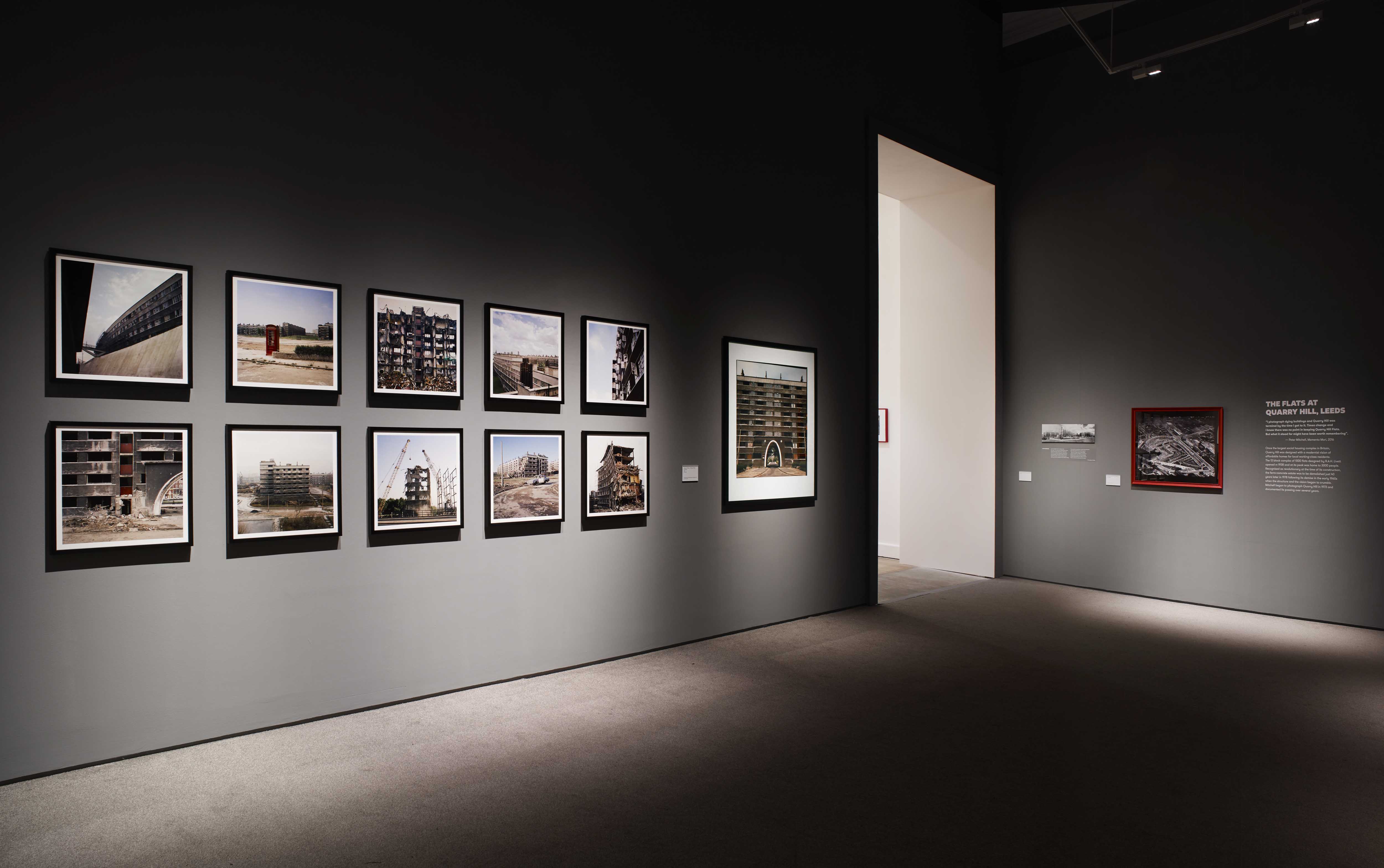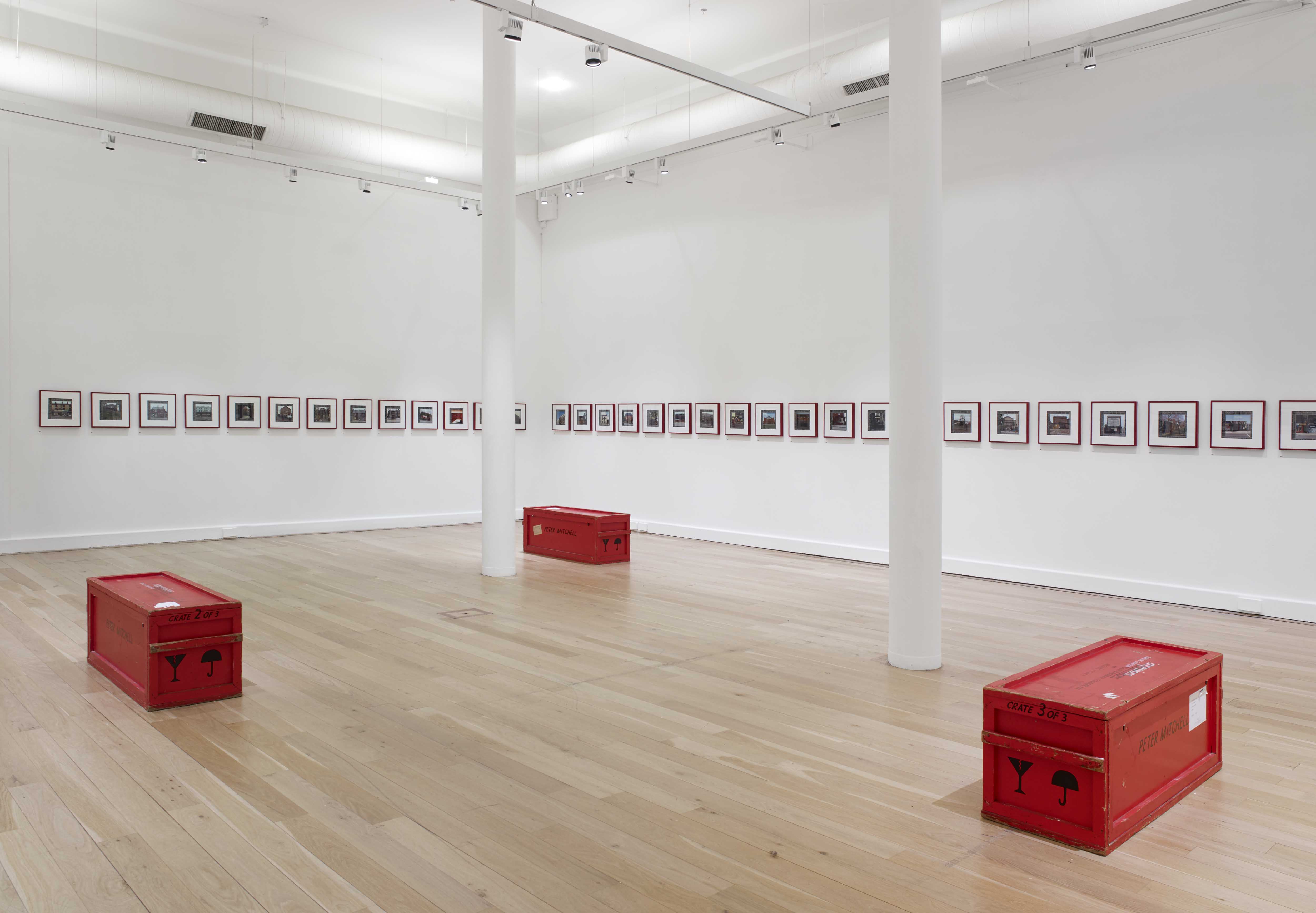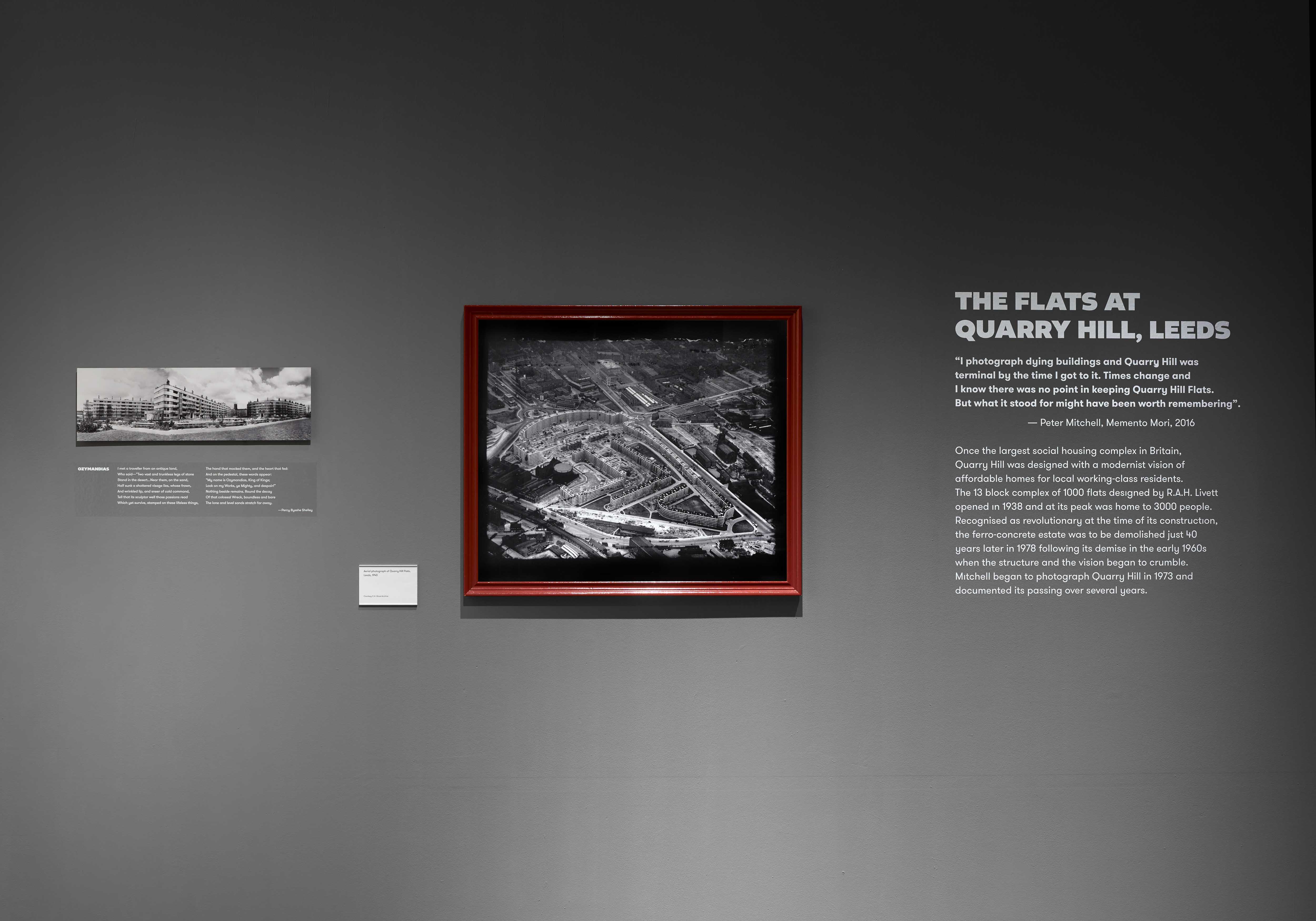 Marketing and exhibition design was created by Leeds Museums & Galleries in-house creative designer in consultation with Peter Mitchell. Rusty reds and vernacular type prominent across Mitchell’s photographs informed the interpretation headings set in Altivo Black by Kostic Type Foundry, paired with the gallery’s house font GT Walsheim.