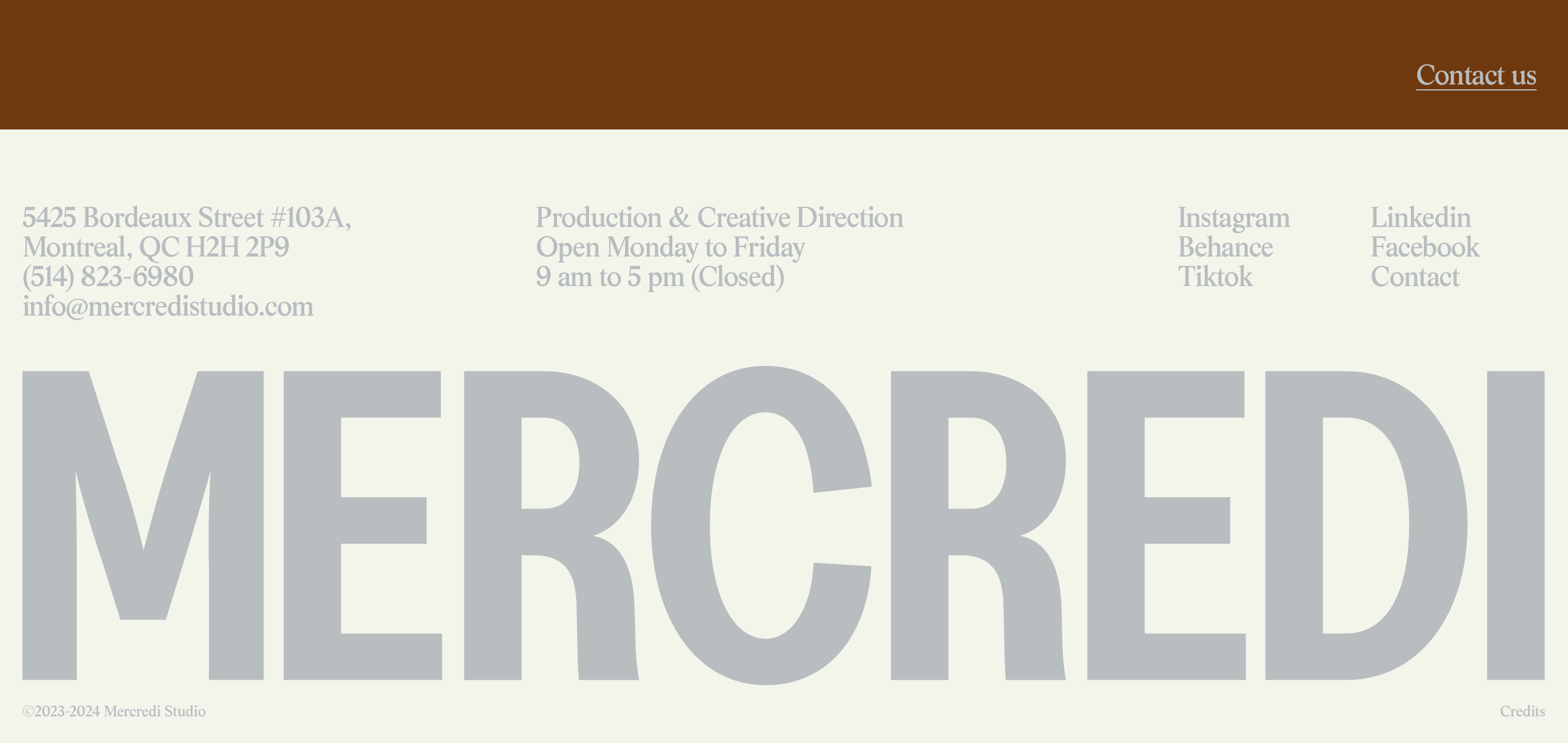 Nouvelle idée has designed a new identity for talent agency Mercredi Studio. The website was developed by Sam Charpentier. The typefaces used are Dazzed and Greed from XYZ Displaay and Store Norske Leif from Skriftkompani.