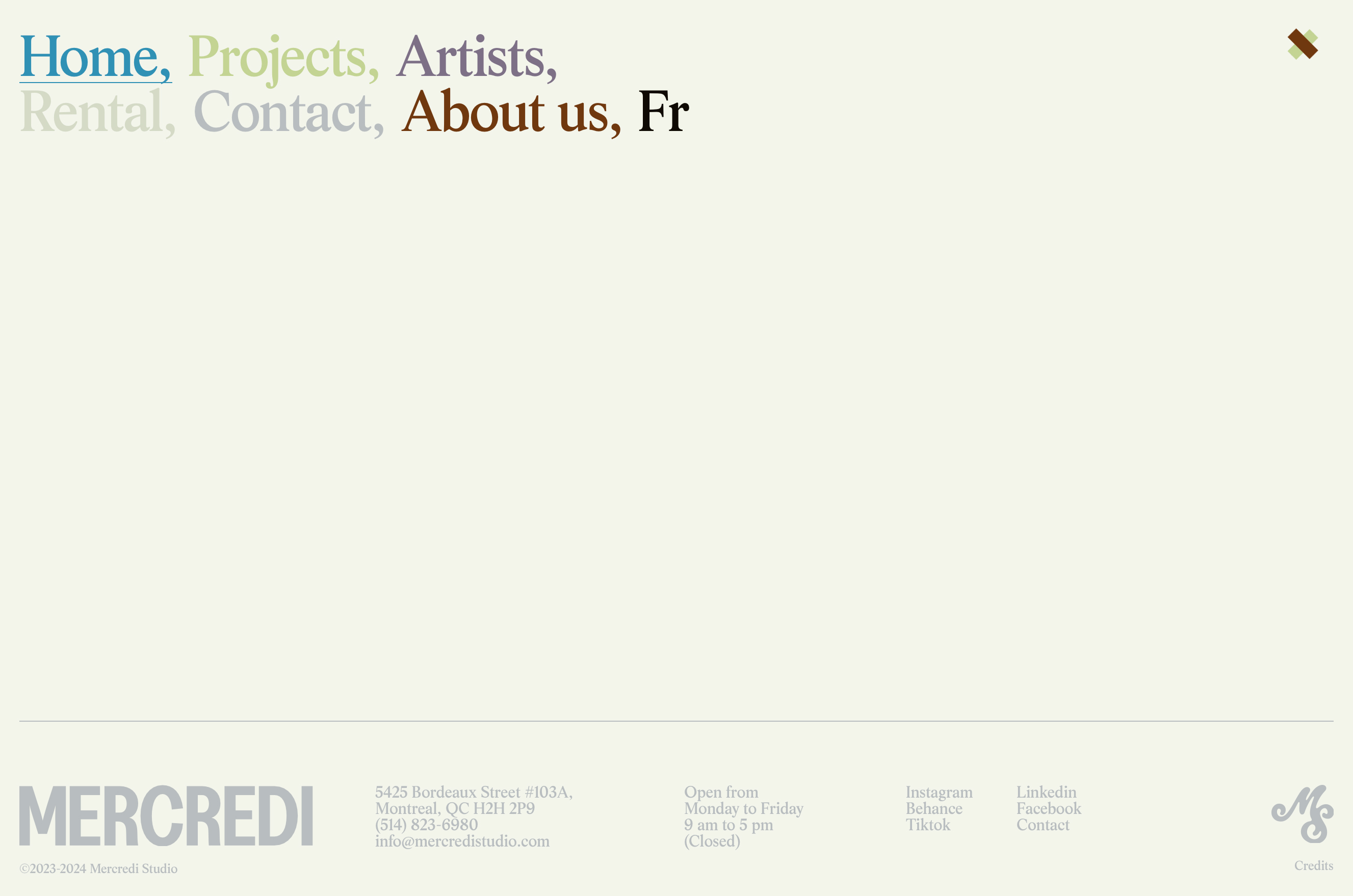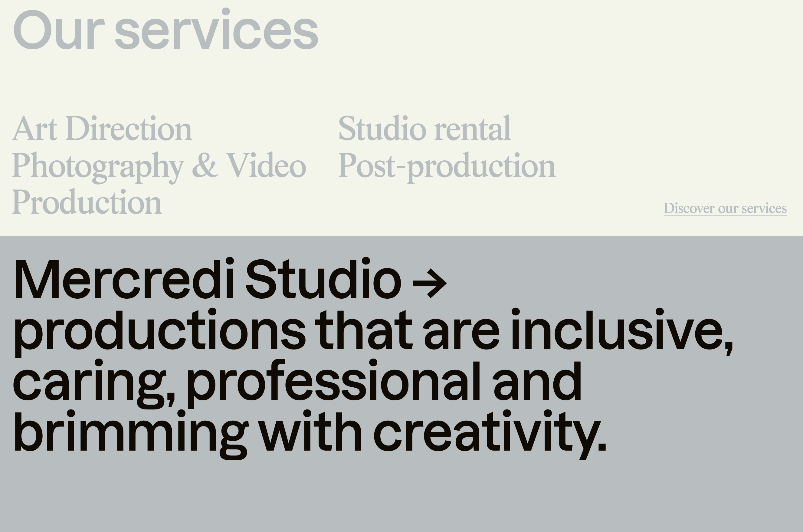 We’re delighted to present our latest project for our friends at Mercredi Studio. Following the announcement of the opening of their talent representation division, they needed a new visual identity and website to reflect who they are. A balanced, colorful and structured visual universe that puts forward an editorial and photographic approach to bring as much neutrality as personality. The color palette is reminiscent of their studio universe, combined with classic yet sophisticated typographic choices that create an intriguing and functional contrast with the stripe pattern, custom monogram and color blocks.