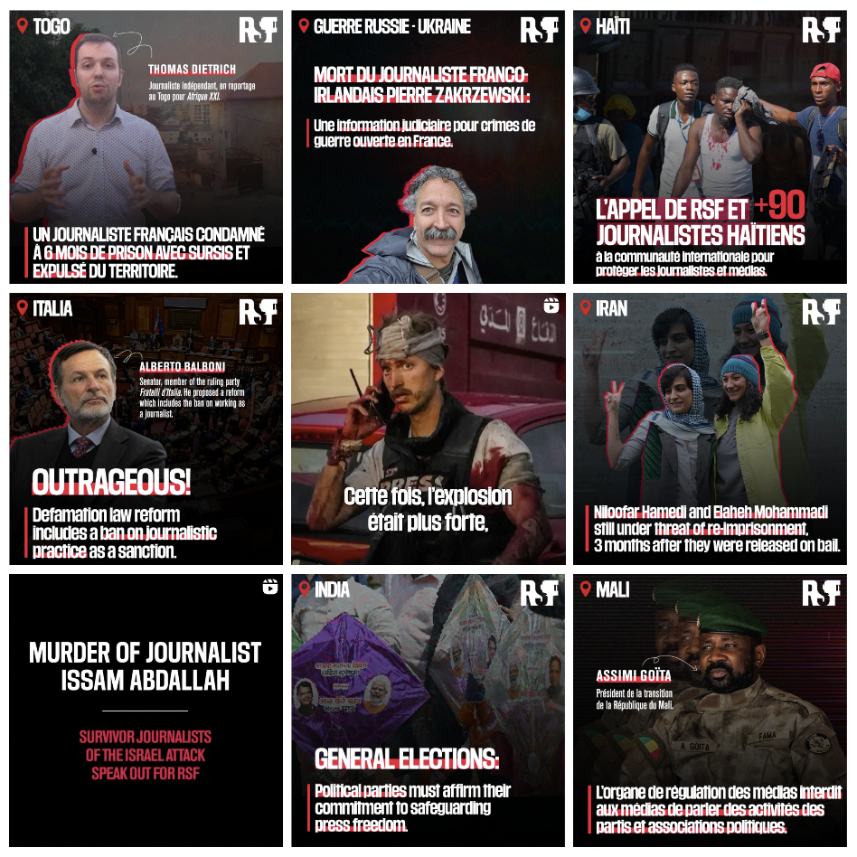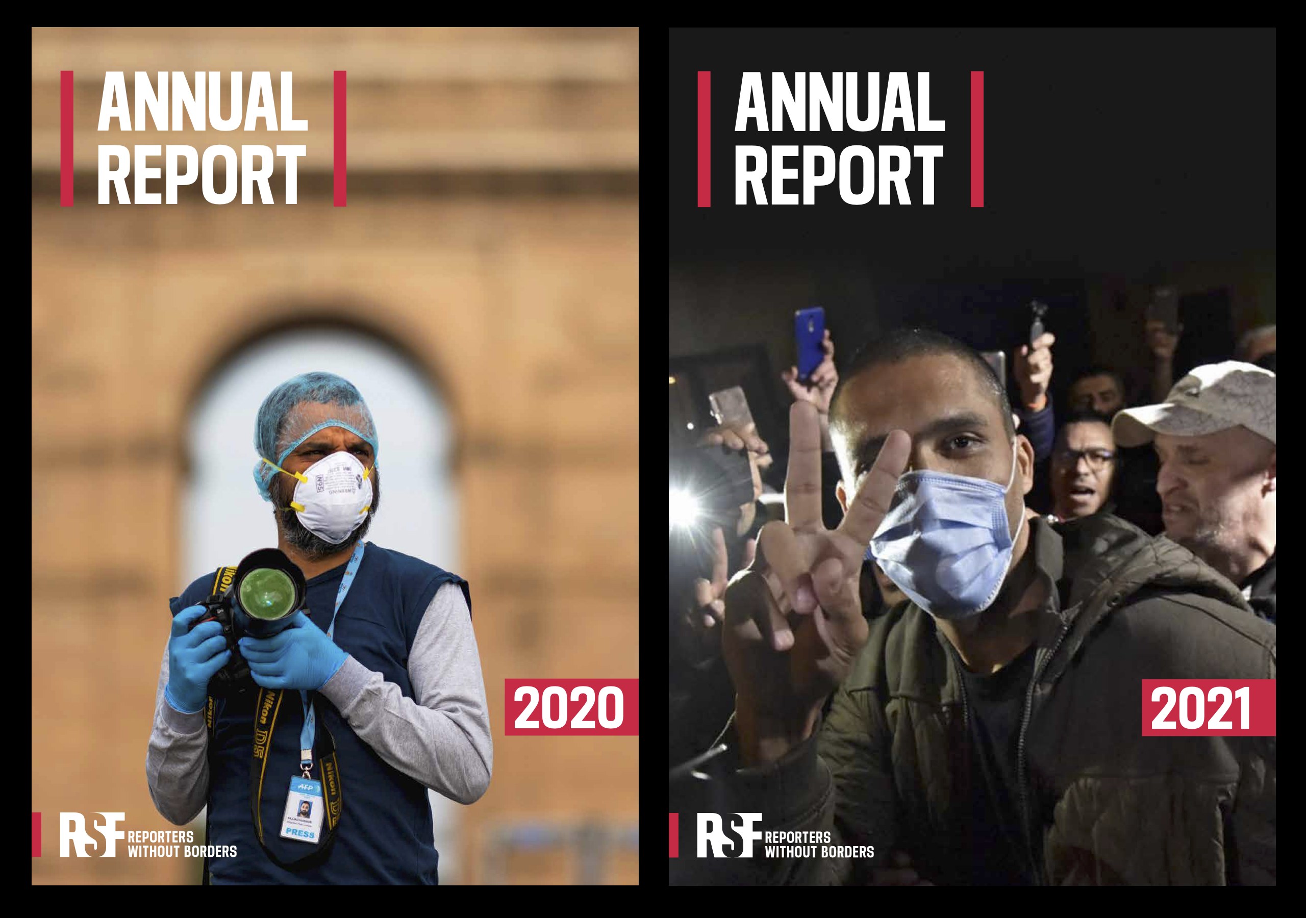 A problem in the field of communication arose with the translation of Reporters Without Border’s name into many languages and with diverging designs developed over time by the different offices. In 2020 RSF’s headquarter commissioned Paris-based agency BETC to redraw a top-level corporate design that would unify the international presence while leaving a lot of freedom on the lower levels. In this post you see images taken from the Reporters sans frontières Mini Guideline 2020, from RSF’s website and from magazines designed by Stéphanie Barcelo and Modular Agency.