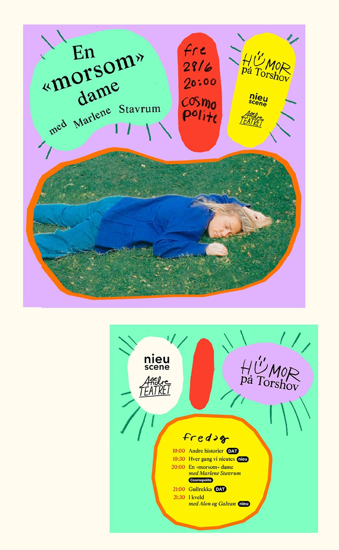 Humor på Torshov comedy festival Contributed by Store Norske Skriftkompani on Jun 13th, 2024. Artwork published in June 2024. Source: www.instagram.com License: All Rights Reserved. Humor på Torshov (“comedy at Torshov”) is a local comedy festival in Oslo, Norway. Their identity and digital flyers are designed by Kristine Lie Øverland using Store Norske Leif, by Skriftkompani. Source: www.instagram.com License: All Rights Reserved. Source: www.instagram.com License: All Rights Reserved. Source: www.instagram.com License: All Rights Reserved. Source: www.instagram.com License: All Rights Reserved. Source: www.instagram.com License: All Rights Reserved. Source: www.instagram.com License: All Rights Reserved. Source: www.instagram.com License: All Rights Reserved. Typefaces More about Store Norske LeifGet Store Norske Leif Formats Branding/Identity (8472) Posters/Flyers (5778) Topics Entertainment (1541) Event (3225) Local (1578) Performing Arts (997) Designers/Agencies Kristine Lie Øverland (2) Tagged withflyers (357)Norwegian (language) (157)comedy (207)festivals (229)theater (336)handwriting (201)smileys (84)hand-cut (27)collage (217)posters (1421)guillemets («») (185)type on an angle (1341)programs (637)early uses (2244) Artwork location Norway (305) Oslo (178) In SetsDesigns by Women (Fonts In Use Staff) (3595)Punk (Megan Cooper) (35)Poster (Megan Cooper) (18)Design inspiration (Olivia Michaelson) (26)Fun (Lucas Bevilaqua) (107) Post a comment Name Email – will not be published Website Your response Submit Comment More Store Norske Leif in use Lise Lebleux website2024Marianne PlanoContributed by Store Norske Skriftkompani Haus für Poesie2025Daniel ZenkerContributed by Store Norske Skriftkompani Pace Ventures website2024unknownContributed by Store Norske Skriftkompani Sponsor More in Performing Arts La Reine Blanche2016Atelier PapierContributed by Bureau Brut Eufonie classical music festival2018Uniforma StudioContributed by Uniforma Studio La Gaîté Lyrique website2020LargeYorgo&CoMatter of FactContributed by Marjan Blan Disco Tehran postersc. 2021Jose BerrioContributed by Jose Berrio Staff Pick More in Posters/Flyers Typ-ound manifesto poster2016Jae EeContributed by Aamina Ganser A Life’s Work – Adrian Frutiger2016Andrew WolfendenContributed by Andrew Wolfenden Sound Pellegrino Album Art2010Ill StudioNicolas MalinowskyContributed by Stephen Coles Staff Pick Marco Scremin portfolioc. 2020AttoContributed by Nikolas Wrobel More Fonts In Use Digital Precision CRT Display Type 30 Manual1964Contributed by Stephen Coles Staff Pick The Blue Flowers by Raymond Queneau (New Directions)2018Peter MendelsundContributed by Florian Hardwig Staff Pick Edition Moderne2019Claudio BarandunJulia MartiContributed by Production Type Staff Pick Kongenfest2016Ondrej JóbContributed by Typotheque Staff Pick