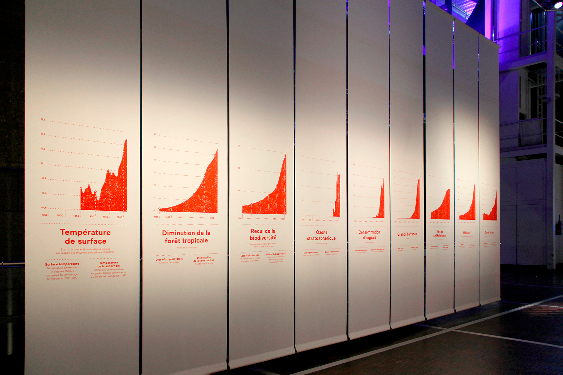 For this exhibition, graphic designer and illustrator Tristan Maillet used the typefaces Maax Raw and Maax Raw Stencil, designed by Damien Gautier and available from 205TF. The scenography was designed by Les Crayons and Yves Morel Workshop.