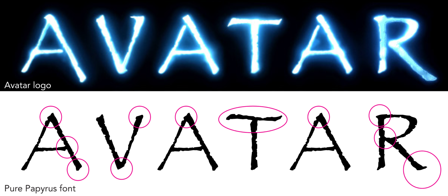 Papyrus was famously chosen as the typeface for the movie’s logo, despite its status as one of the world’s most derided typefaces. The designer did make various edits when creating the logo.