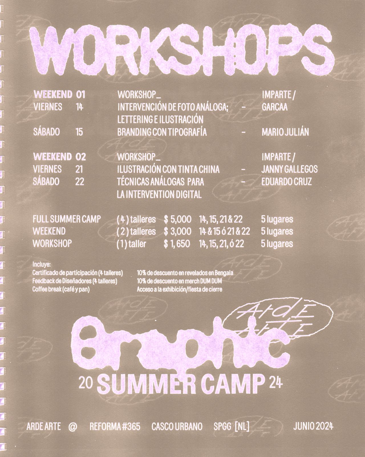 For this summer, Arde Arte, a creative space based in San Pedro Garza García, Mexico, organized a series of graphic design and visual arts workshops, inviting different designers and artists to share their passion and knowledge with the creative community.