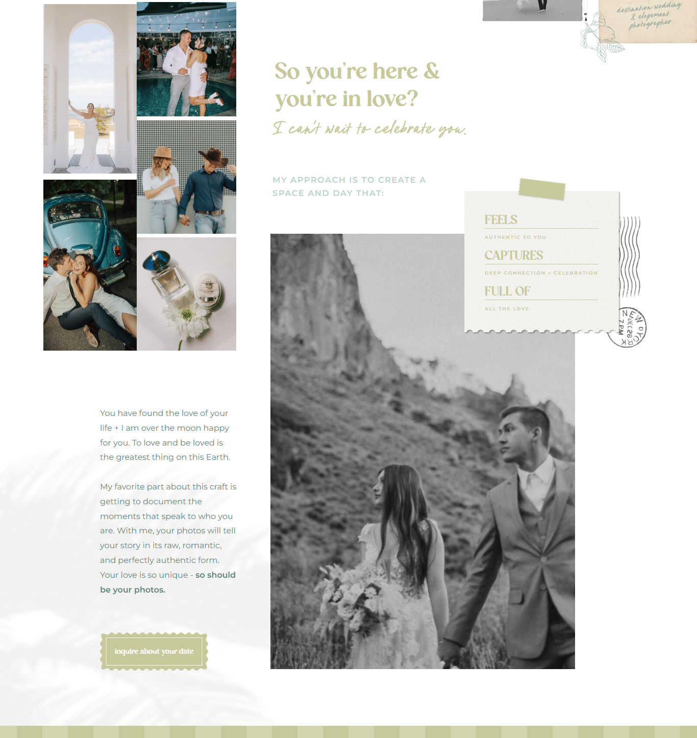 With Lovee Photo applies Orange Squash as the logo and main typeface on their website. Additionally, Montserrat is used for body text, and the occasional handwritten texts are displayed in Des Montilles.
