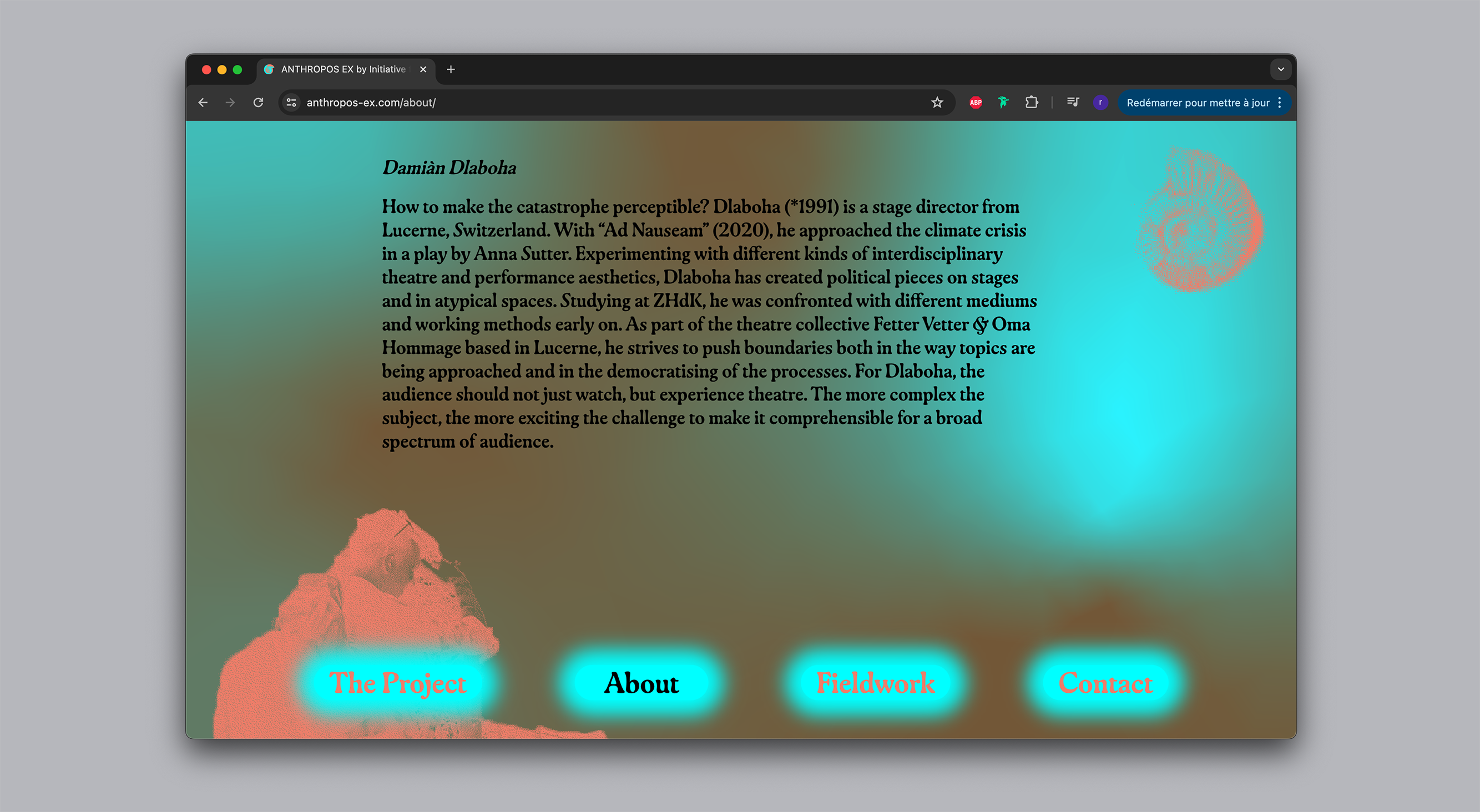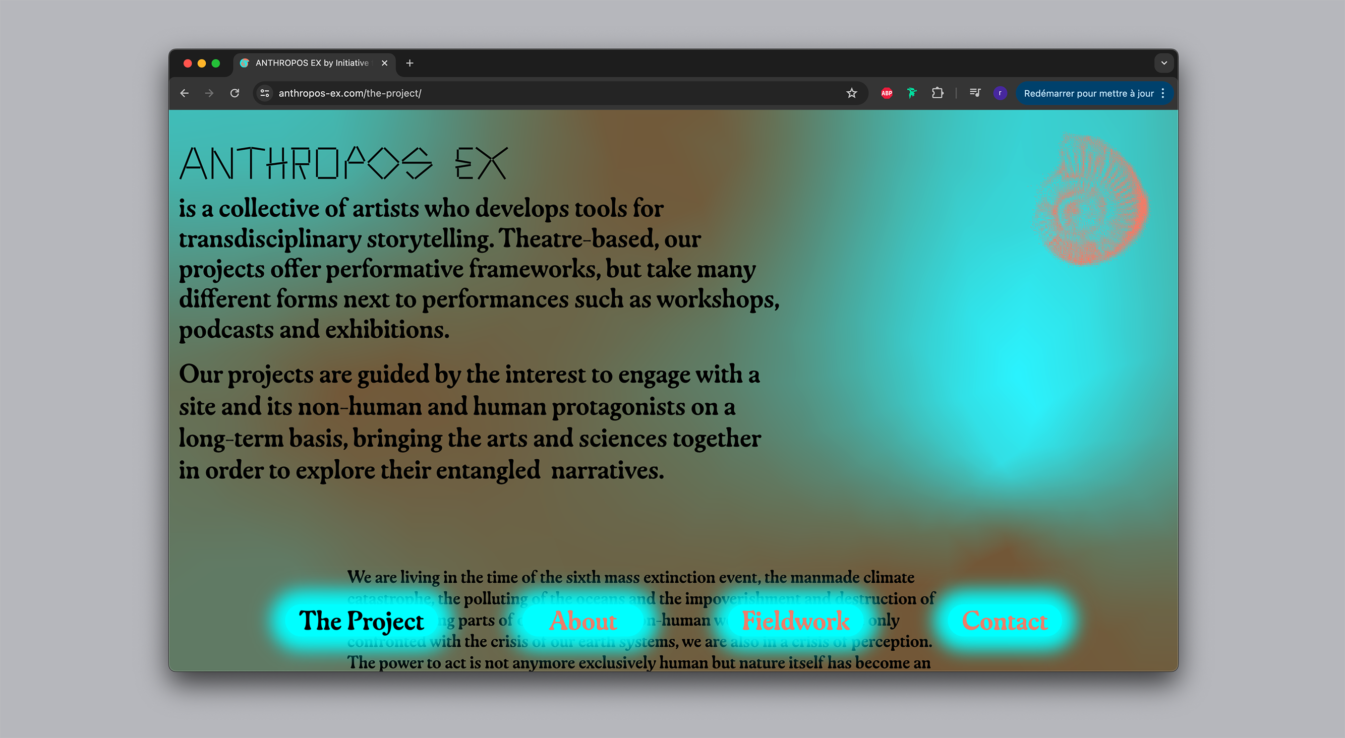 Anthropos Ex is a theatre-based collective of artists. We develop tools for transdiciplinary storytelling which speak of the entanglement of human and non-human agency. These manifest in many different projects and formats such as performances, workshops and exhibitions.