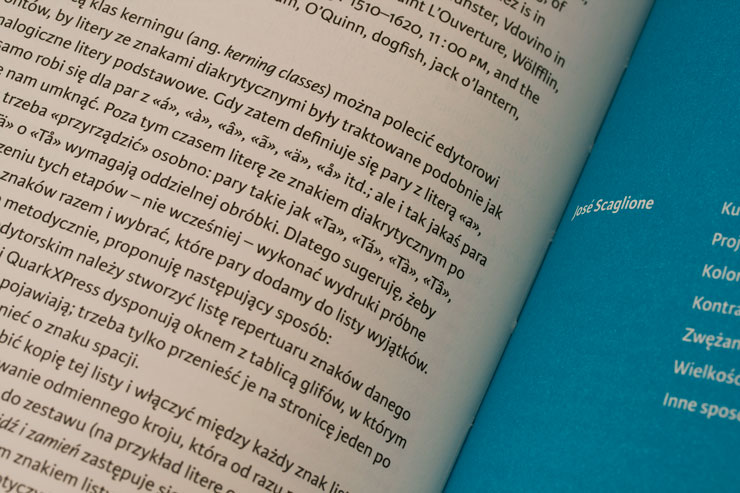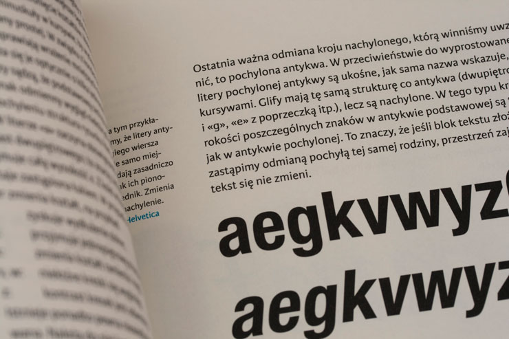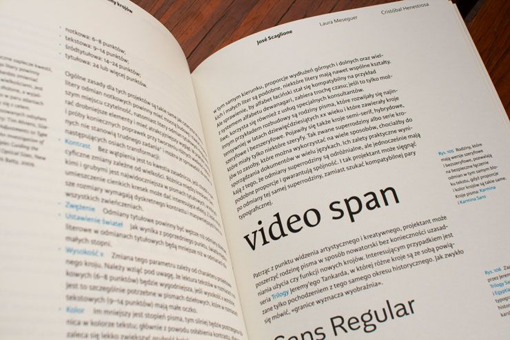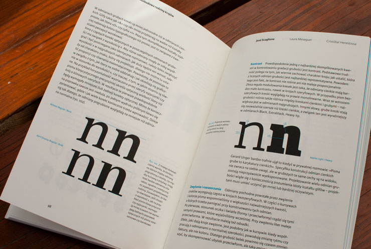 The Polish edition of the book Cómo crear tipografías (“How to create typefaces”), Jak projektować kroje pisma, by Cristobal Henestrosa, Laura Meseguer and José Scaglione, uses Karmina Sans in headlines and text, with a crispy and contemporary result.