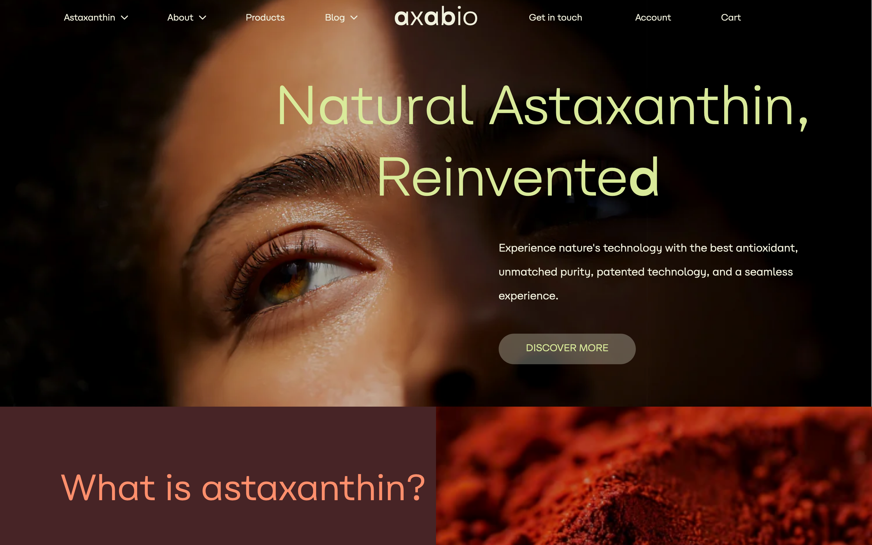 Design studio WeWantMore used Carbona in their redesign of Axabio’s website. Axabio produces astaxanthin, which is “a naturally occurring carotenoid, a type of pigment that is produced by certain types of algae. It is responsible for the vibrant pink and red colors seen in seafood such as salmon and shrimp. When extracted from the Haemotococcus pluvialis alga, natural astaxanthin offers significant health benefits for food supplements or cosmetics.”.