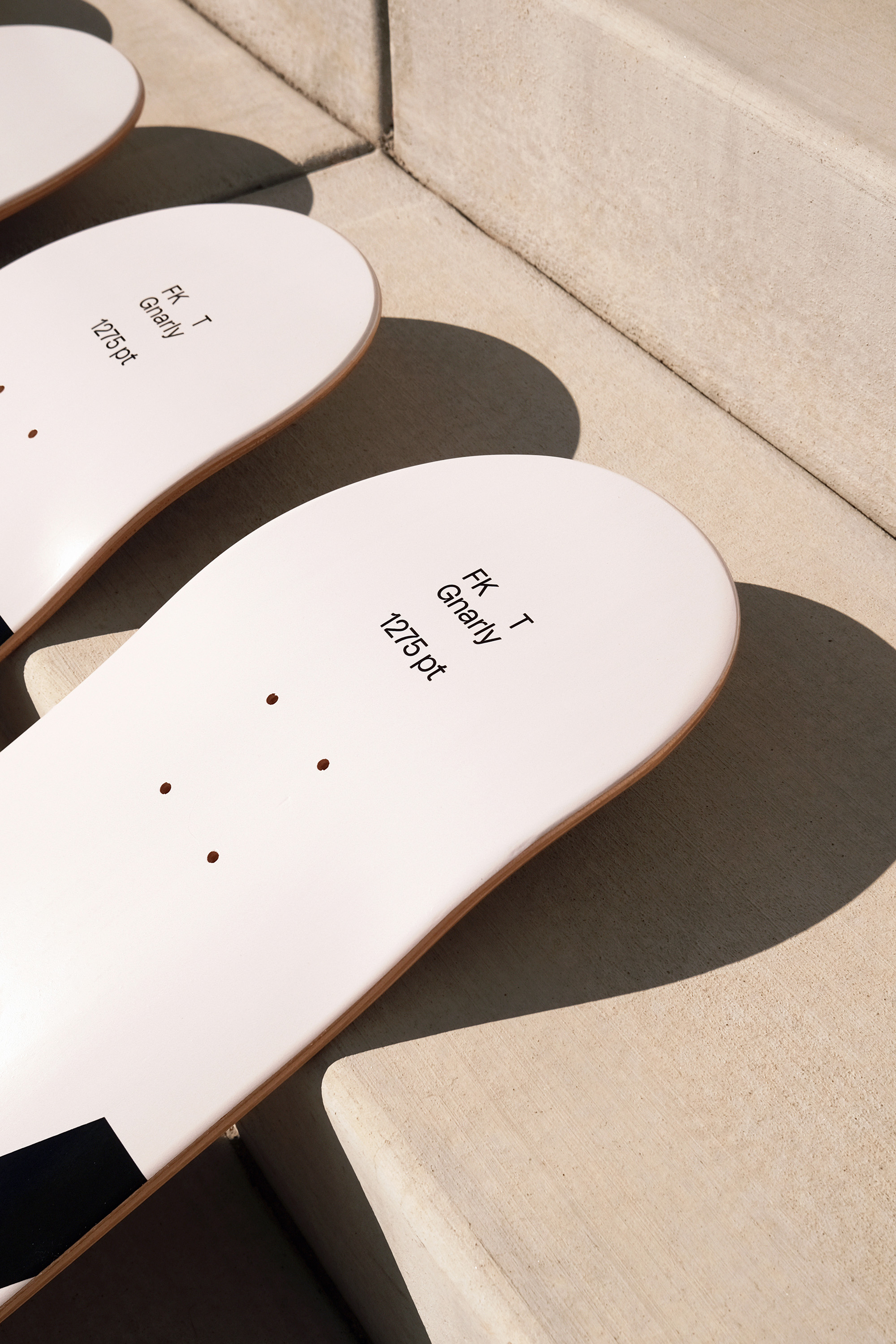 FKT Gnarly skateboards Contributed by Formerly Known on Jun 29th, 2024. Artwork published in 2024. Source: www.instagram.com Formerly Known. License: All Rights Reserved. Limited edition skate decks featuring FKT Gnarly, a typeface by Formerly Known. Source: www.instagram.com Formerly Known. License: All Rights Reserved. Source: www.instagram.com Formerly Known. License: All Rights Reserved. Source: www.instagram.com Formerly Known. License: All Rights Reserved. Source: www.instagram.com Formerly Known. License: All Rights Reserved. Source: www.instagram.com Formerly Known. License: All Rights Reserved. Typefaces More about FKT GnarlyGet FKT Gnarly Formats Object/Product (1118) Topics Product (2059) Sports (766) Designers/Agencies Hype Type Studio (6) Formerly Known (1) Tagged withskateboarding (58)type promotion (110)big type (1709)series (1146)limited editions (424)uses by the typeface’s designer (1243)early uses (2179)slashed zero (51) Artwork location United States (9784) Los Angeles (560) In SetsMisc (Lucas Bevilaqua) (15)Inspo (Sergi Romeu Forcadell) (158) Post a comment Name Email – will not be published Website Your response Submit Comment More in Product Notka Chocolatec. 2023Bualié Creative StudioContributed by Jay Darvishian MOTH canned cocktailsc. 2021PentagramHarry PearceNaresh RamchandaniContributed by Milos Mitrovic Staff Pick Subsystematicsc. 2023AND ASSOCIATES STUDIOThe Company You Keep (TCYK)Samuel James WillettContributed by Ryan Maeland Sponsor More in Object/Product Other Music NYCAustin PetitoPetito’s Tight SliceContributed by Stephen Coles Staff Pick “Bake someone happy” recipe box2012Contributed by Nick Sherman Sabre Lagerc. 1975unknownContributed by Florian Hardwig Beekeeper card game2016Ryan NoonanContributed by Ryan Noonan More Fonts In Use Parque de la Memoria visual identityc. 2016Estudio Lo BiancoCatalina Ruiz LuqueJuan Lo BiancoContributed by PampaType Team Staff Pick Die Andere Bibliothek – Spring 2013 Preview2013BANK™Contributed by Florian Hardwig Staff Pick 2019 Ciné festival2019Paula Del MasGimmewings StudioContributed by Sharp Type Staff Pick Lombada #12024Tereza BettinardiContributed by Tereza Bettinardi Staff Pick Pin It, Tack It, Hang It: The Big Book of Kids’ Bulletin Board Ideas by Phyllis & Noel Fiarotta1975Noel FiarottaPhyllis FiarottaContributed by Garrison Martin Staff Pick Moondog & Moondog 2 album art1969Ron CoroTeresa AlfieriContributed by Stephen Coles Staff Pick Passage AiR2021GrupppoContributed by Valerio Nicoletti Staff Pick Foxy Brown and Jackie Brown1974Contributed by Stephen Coles Blog
