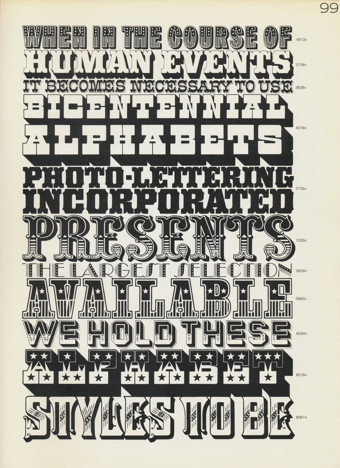 When in the course of human events, it becomes necessary to use bicentennial alphabets, Photo-Lettering Incorporated presents the largest selection available. We hold these alphabet styles to be