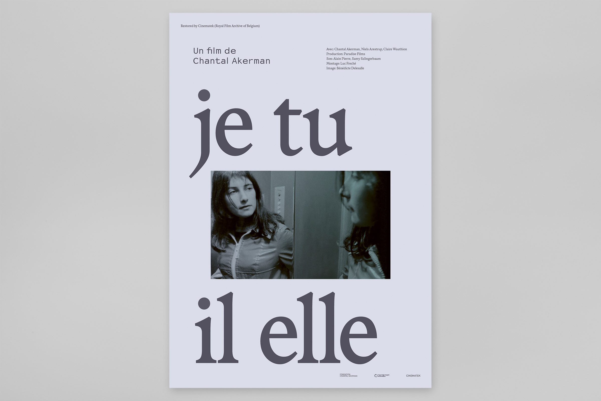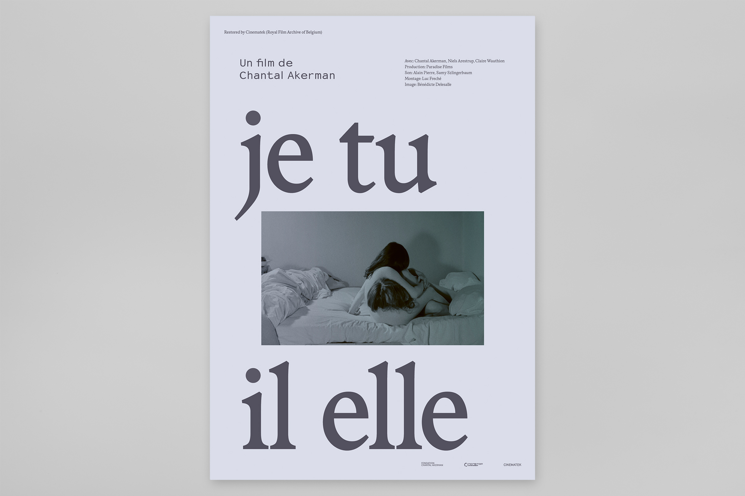 Malmsten Hellberg designed the two-sided poster, an assignment for quality film distributor NonStop Entertainment in their series of films by female directors that finally get a theatrical release in Sweden. The main typeface is Adelphe (a neologism meaning “sibling”, French used to only have the gender-specific equivalents of “sister” and “brother”) by Eugénie Bidaut. It includes experimental glyphs for masculine and feminine endings.