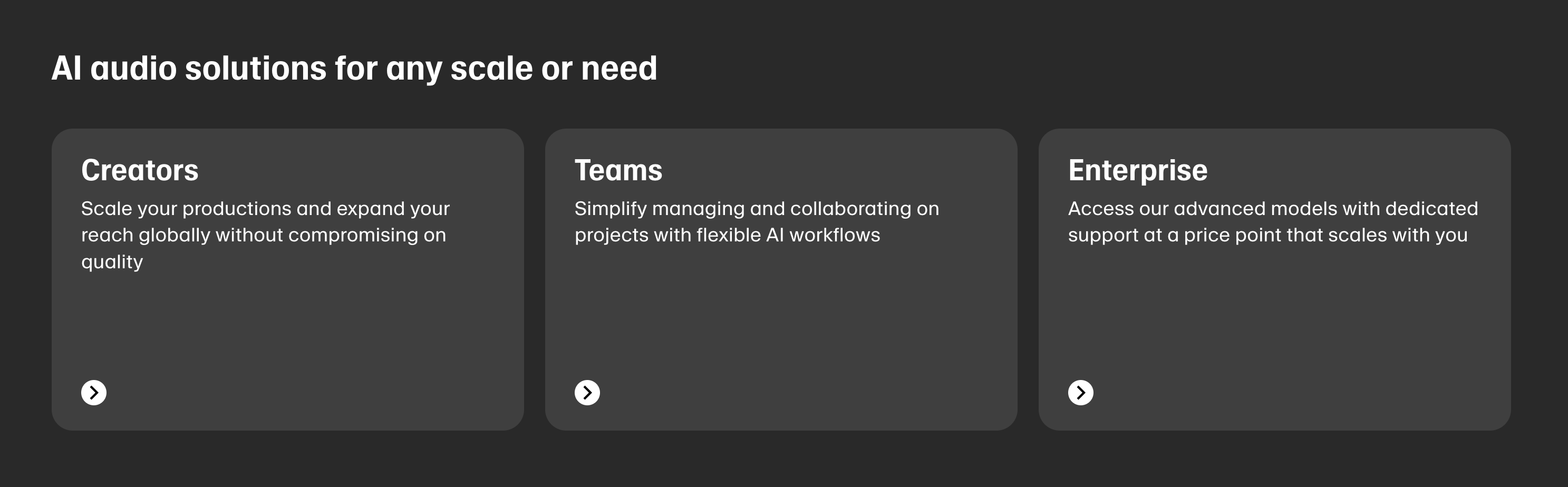 Our research team develops AI audio models that generate realistic, versatile and contextually-aware speech, voices, and sound effects across 29 languages. Our product team tailors these models to the needs of everyday users, prosumers, and businesses.