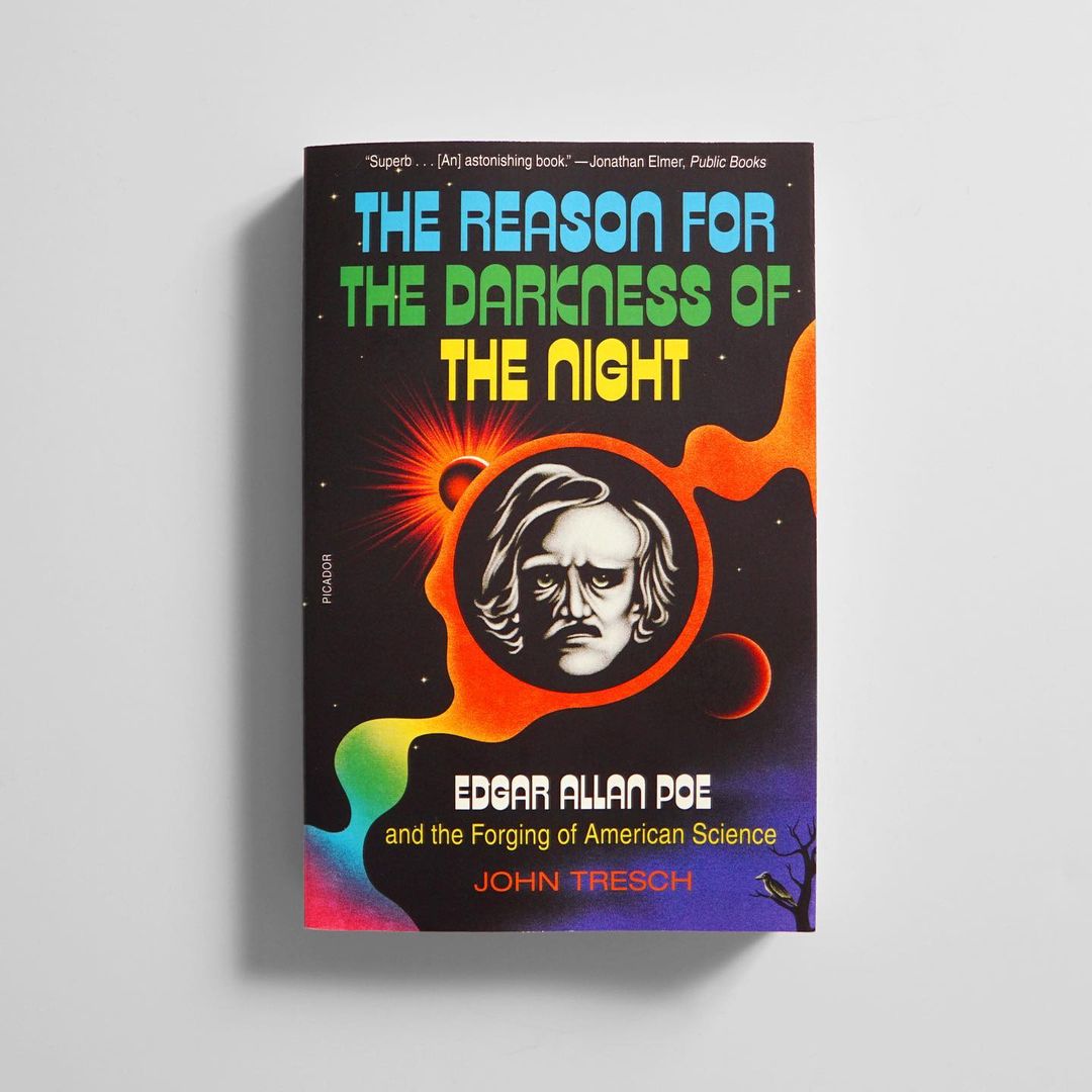 All-caps Zipper in three lines of alternating colors for the cover of The Reason for the Darkness of the Night. Edgar Allan Poe and the Forging of American Science. This “innovative biography of Edgar Allen Poe [highlights] his fascination and feuds with science.” It was written by John Tresch, Professor of History of Art, Science, and Folk Practice at the Warburg Institute in the University of London.