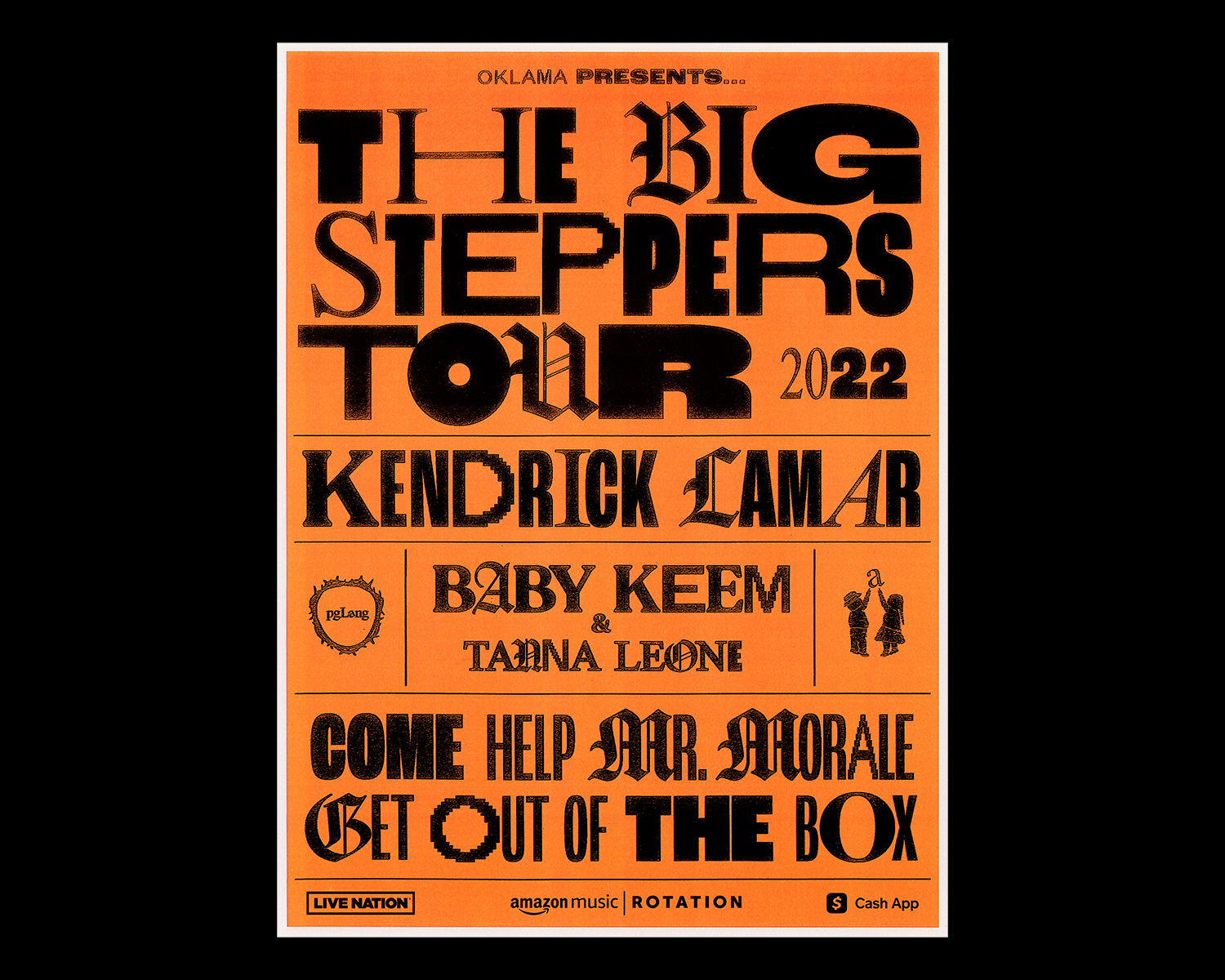 The iconic poster for the 2022 Big Steppers tour, hosted by Kendrick Lamar and sponsored by Amazon.
