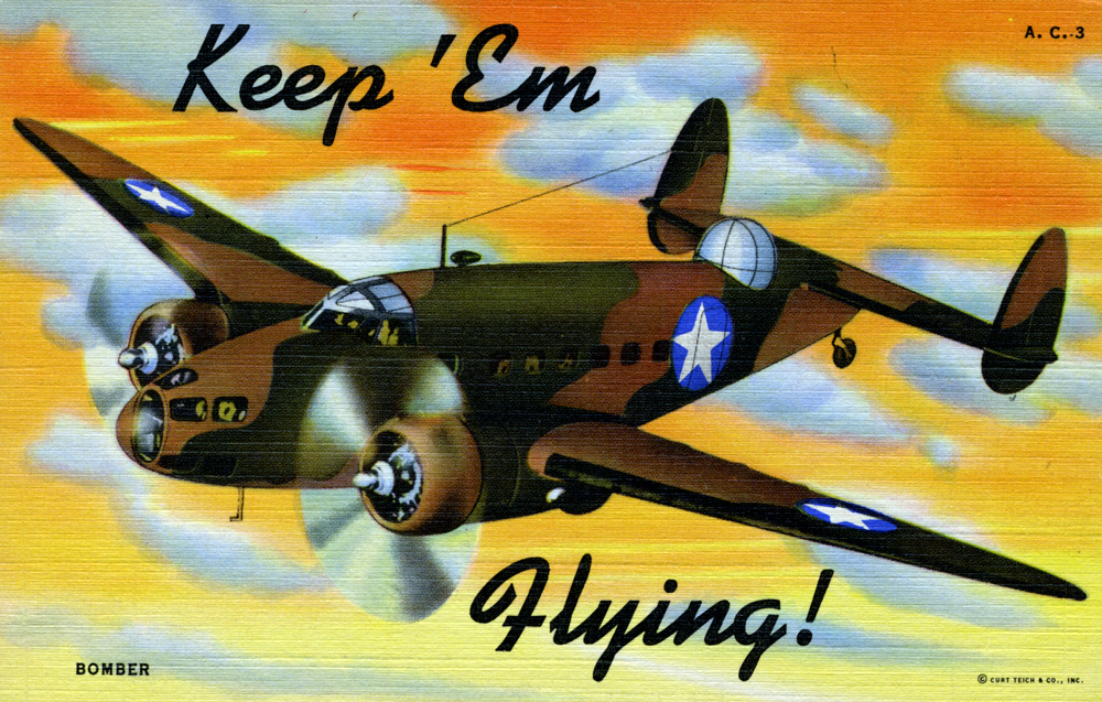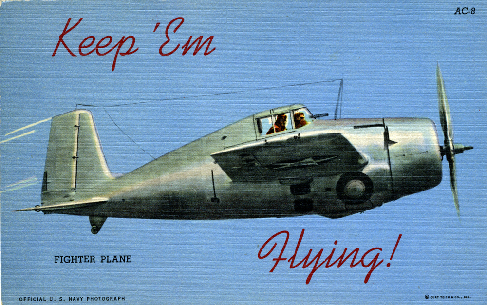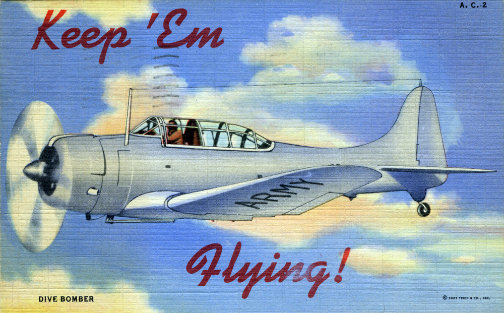 “Keep ’Em Flying” US Air Corps postcards Contributed by Stephen Coles on Mar 10th, 2014. Artwork published in 1942. Source: www.flickr.com Image via collection of Steven R. Shook. License: All Rights Reserved. Publisher, Printer, Photographer: Curt Teich Collection: Steven R. Shook Source: www.flickr.com Image via collection of Steven R. Shook. License: All Rights Reserved. Source: www.flickr.com Image via collection of Steven R. Shook. License: All Rights Reserved. Source: www.flickr.com Image via collection of Steven R. Shook. License: All Rights Reserved. Source: www.flickr.com Image via collection of Steven R. Shook. License: All Rights Reserved. Source: www.flickr.com Image via collection of Steven R. Shook. License: All Rights Reserved. Typefaces More about KaufmannGet KaufmannMore about Copperplate GothicGet Copperplate GothicMore about MemphisGet Memphis Formats Other (65) Topics Activism (1110) Governmental/Civic (725) Transportation (338) Designers/Agencies Curt Teich (1) Tagged withpostcards (179)military (46)US Army (1)US Air Corps (1)US Navy (1)linen paper (2)World War II (68)airplanes (68)series (1160) Artwork location United States (9908) In Sets1940s (Roque Strew) (10)Left Impressions (Josh Cole) (62) Post a comment Name Email – will not be published Website Your response Submit Comment More Kaufmann in use Toshiki Kadomatsu – After 5 Clash album art1984Kazunori KandaShinpei MatsuoYutaka OnagaContributed by MrRifleman End as a Man1947unknownContributed by Stephen Coles Karoff Originals #350 Labelling1955Contributed by Stephen Coles Sponsor More in Activism BesserMitfahren.de2013YanoneContributed by Florian Hardwig Staff Pick RuT – Rad und Tat Berlin newspaper2023studiokwiContributed by Anastasia Balashova (Contrast Foundry) The Black School identity2016Joseph Cuillier IIIShani PetersMitchell Reese JohnsonContributed by Stephen Coles This Girl Can campaign2014unknownContributed by Stephen Coles Staff Pick More in Other “Gratitude” tattoo2011Andrea EmryContributed by TypeMistress “Mr and Mr” letterpress print2013Richard SmallContributed by Nick Sherman Pepparkakor (gingerbread cookies)2012Sophia SundqvistContributed by Letters from Sweden Kylie Minogue – “Padam Padam” single cover and campaign2023Studio MorossAries MorossNick GreenbankContributed by Teguh Arief More Fonts In Use Sly & The Family Stone – A Whole New Thing album art1967unknownTeresa AlfieriContributed by Reybach C Staff Pick Raqib Shaw: Palazzo della Memoria2022Studio ArdContributed by Lineto Staff Pick Illustration and letterpress print for “The English Wars”, The New Yorker2012Sam WinstonContributed by Stephen Coles Staff Pick Poing and Maja S.K. Ratkje – Kapital & Moral album art2016Robin MientjesHåvard GjelsethContributed by Robin Mientjes Staff Pick