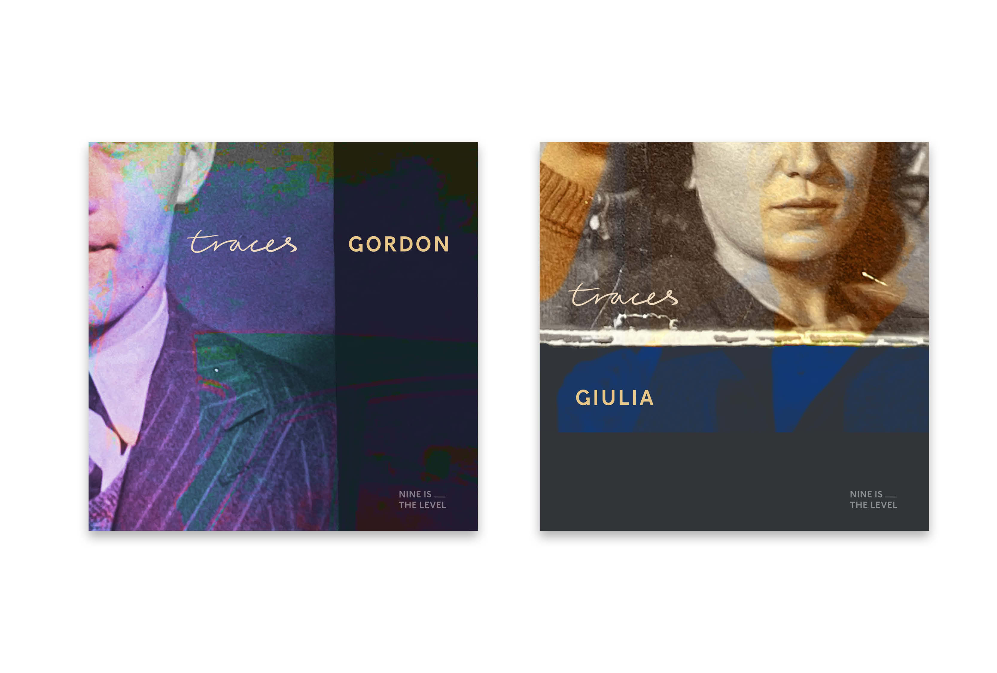 Traces is a EP by Nine is the Level, a project by musician Doug Tolley. For designing the artwork, Jon Hicks of Hicks Design asked Tolley to search through his family photo archives to provide material, and also to provide some background about the subject of each of the tracks, which are named after his four grandparents. For the typography, Hicks worked with all-caps F37 Beckett.