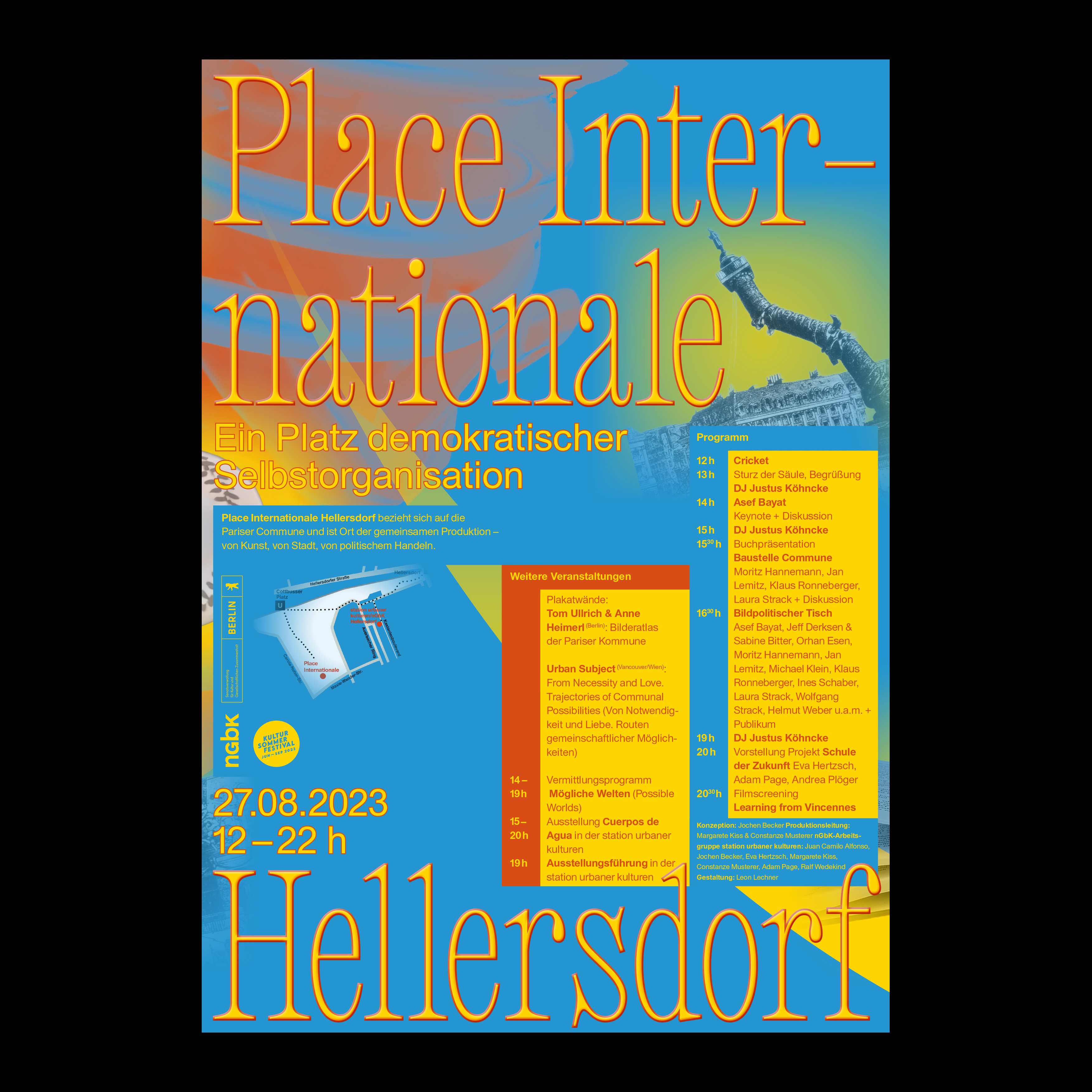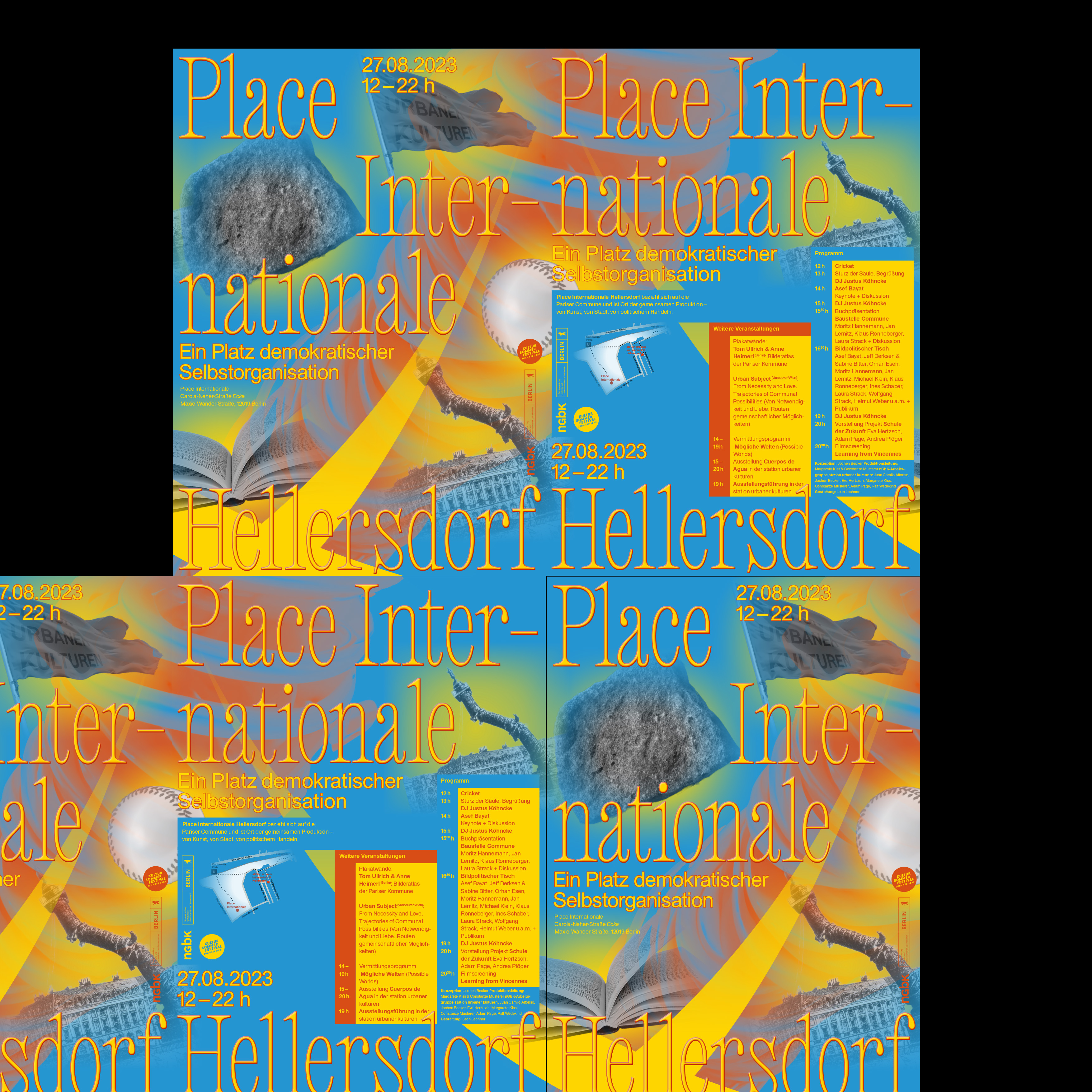 Posters for Place Internationale Hellersdorf, an event organized as part of the Kultursommerfestival Berlin 2023. Words by designer Leon Lechner (translated from the German):