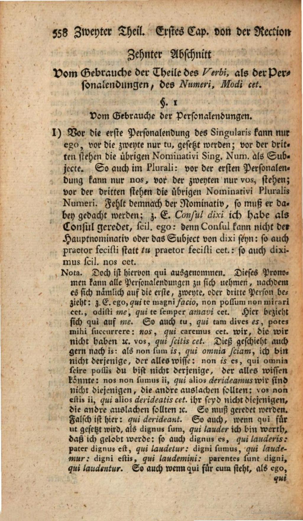 There were, and are, always publications whose text will benefit and become more lucid and comprehensive if some manner of type differentiation is applied. We cannot help but envy Immanuel Scheller’s setting of the Ausführliche lateinische Sprachlehre (Comprehensive Latin Grammar), Leipzig, 1782 […]. Scheller in 1782 used roman and italic for Latin words. The enviable author and typesetter had at his disposal four different fonts of the same size for four categories of words. […] And how much better-looking a combination is Alte Schwabacher and Breitkopf Fraktur than Garamond and semibold Garamond! Scheller in his grammar book perfectly presents the difference between German and Latin through the clever use of contrasting shapes, Fraktur and Schwabacher on the one hand, roman and italic on the other.