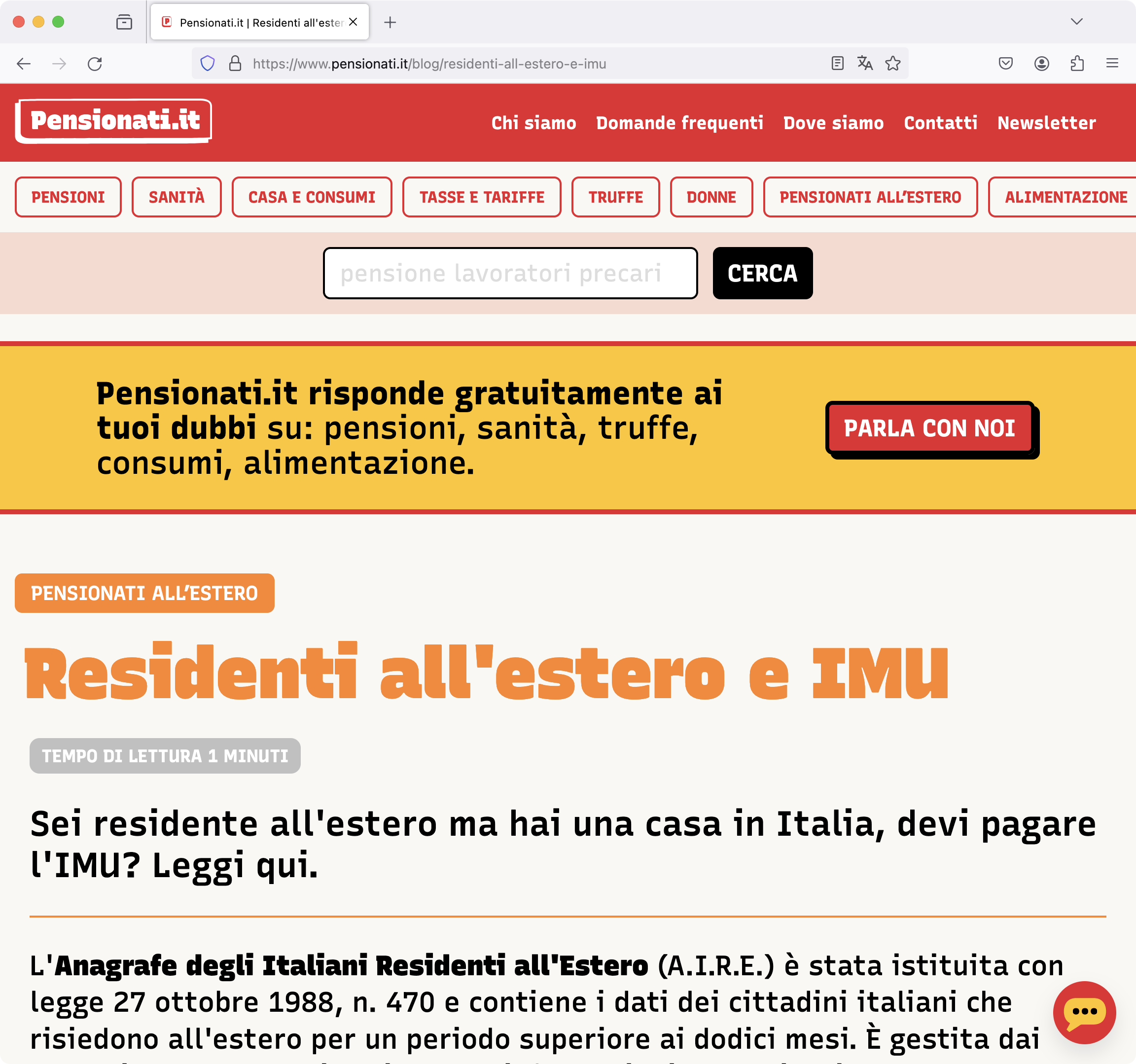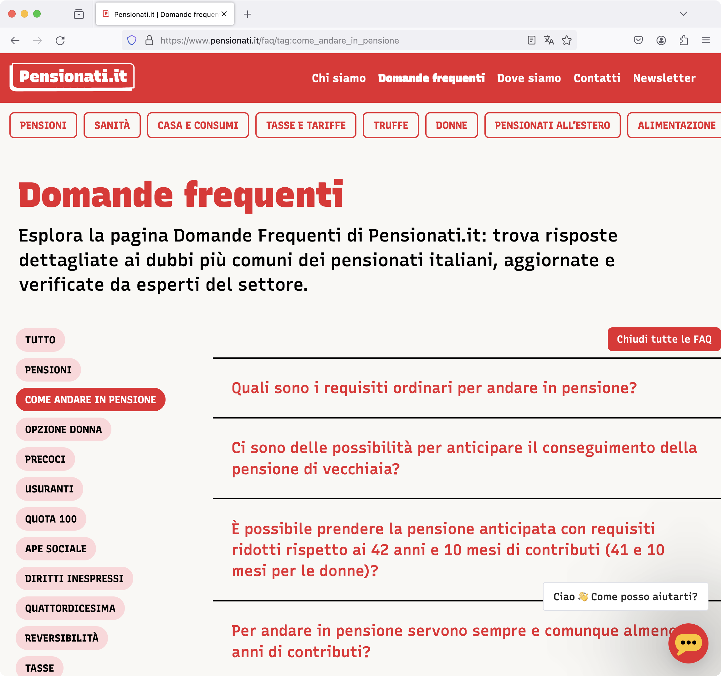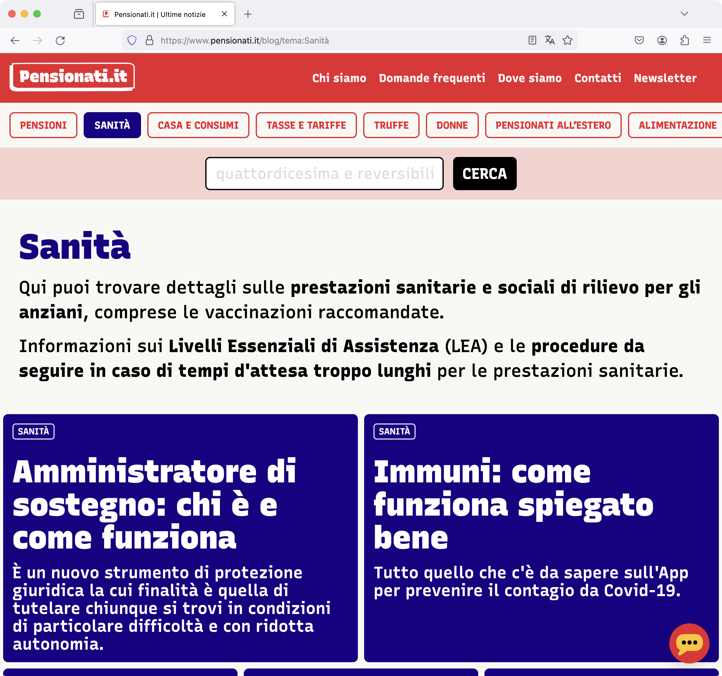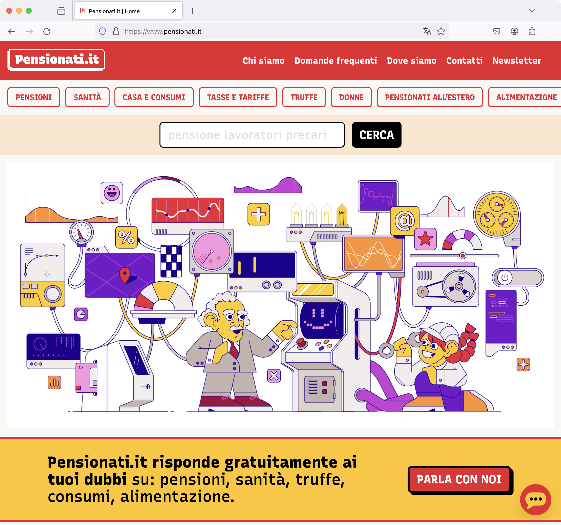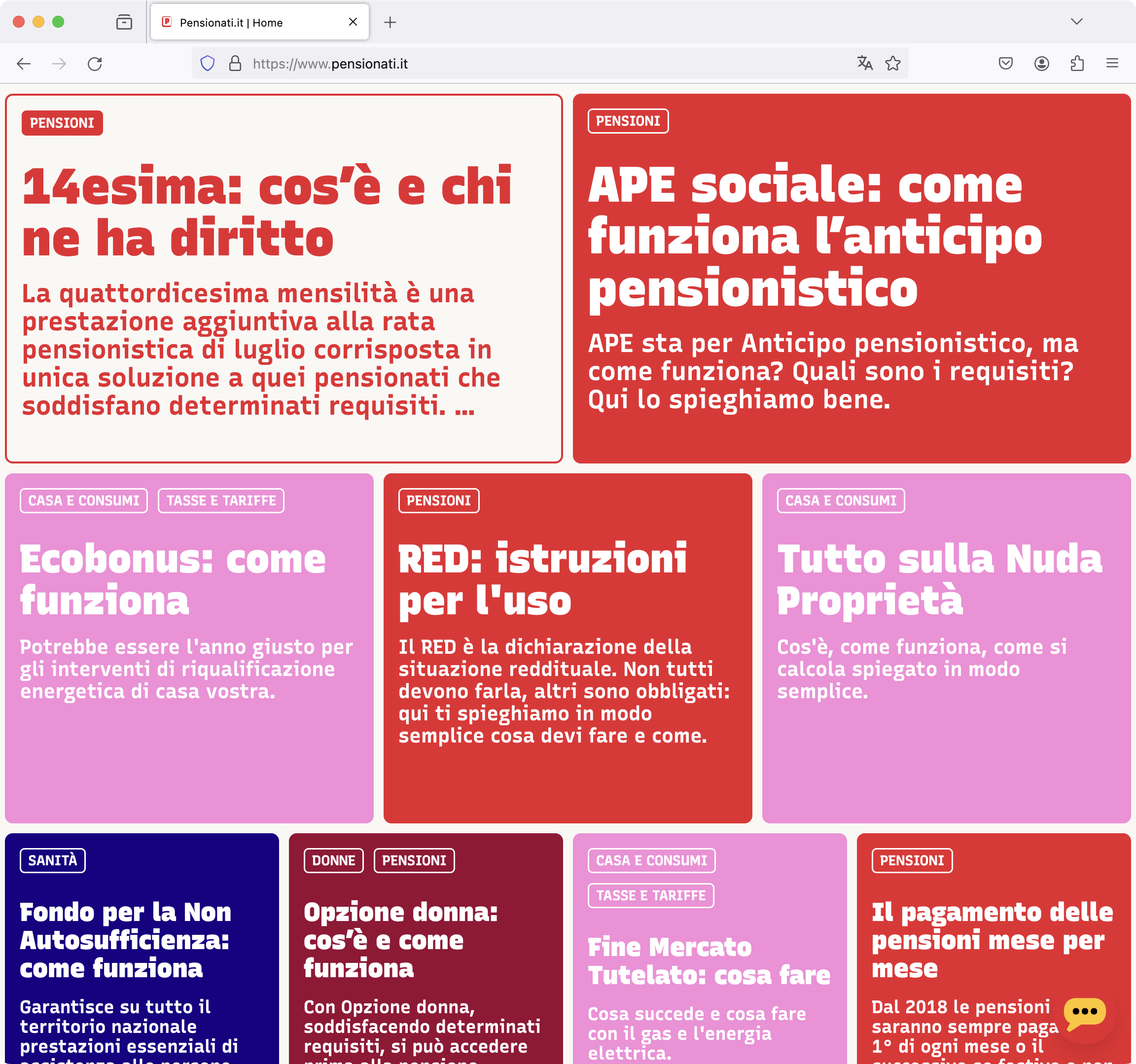 Pensionati.it is a portal dedicated to Italian pensioners and their families. It provides information on a wide range of topics covered analytically and updated periodically,