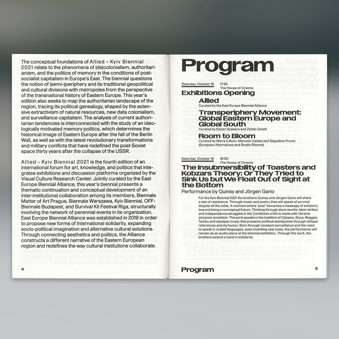 The fourth edition of the Kyiv Biennial, an international forum for art, knowledge, and politics that integrates exhibitions and discussion platforms, was taking place from October 16 to November 14, 2021. The edition “Allied” emphasizes cross-border collaboration and is jointly curated by members of the East Europe Biennial Alliance: Biennale Matter of Art Prague, Biennale Warszawa, Kyiv Biennial, OFF-Biennale Budapest, and Survival Kit Festival Riga.