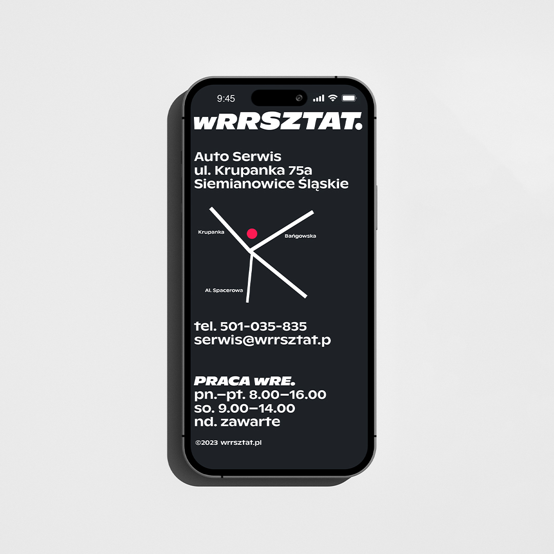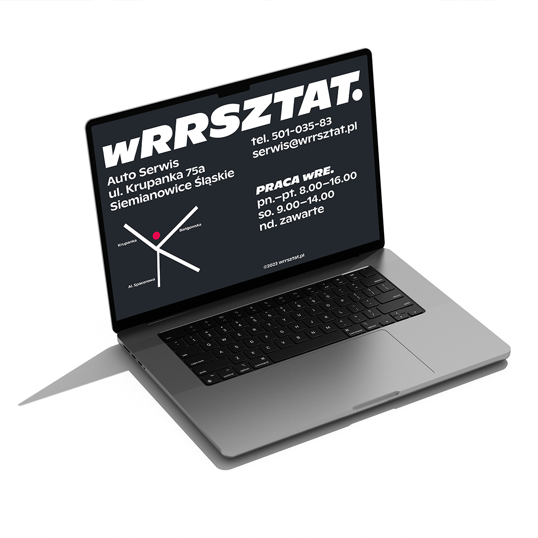 Wrrsztat is an automotive repair shop based in Siemianowice Śląskie, Poland. In Polish, a car repair shop is called “warsztat” – similar to a garage or workshop. Brand name, WRRSZTAT is a neoogism which adds a vroom sound (an onomatopoeia representing the sound of an engine revving up).