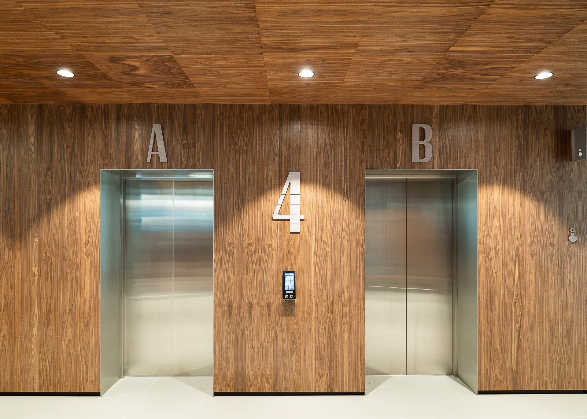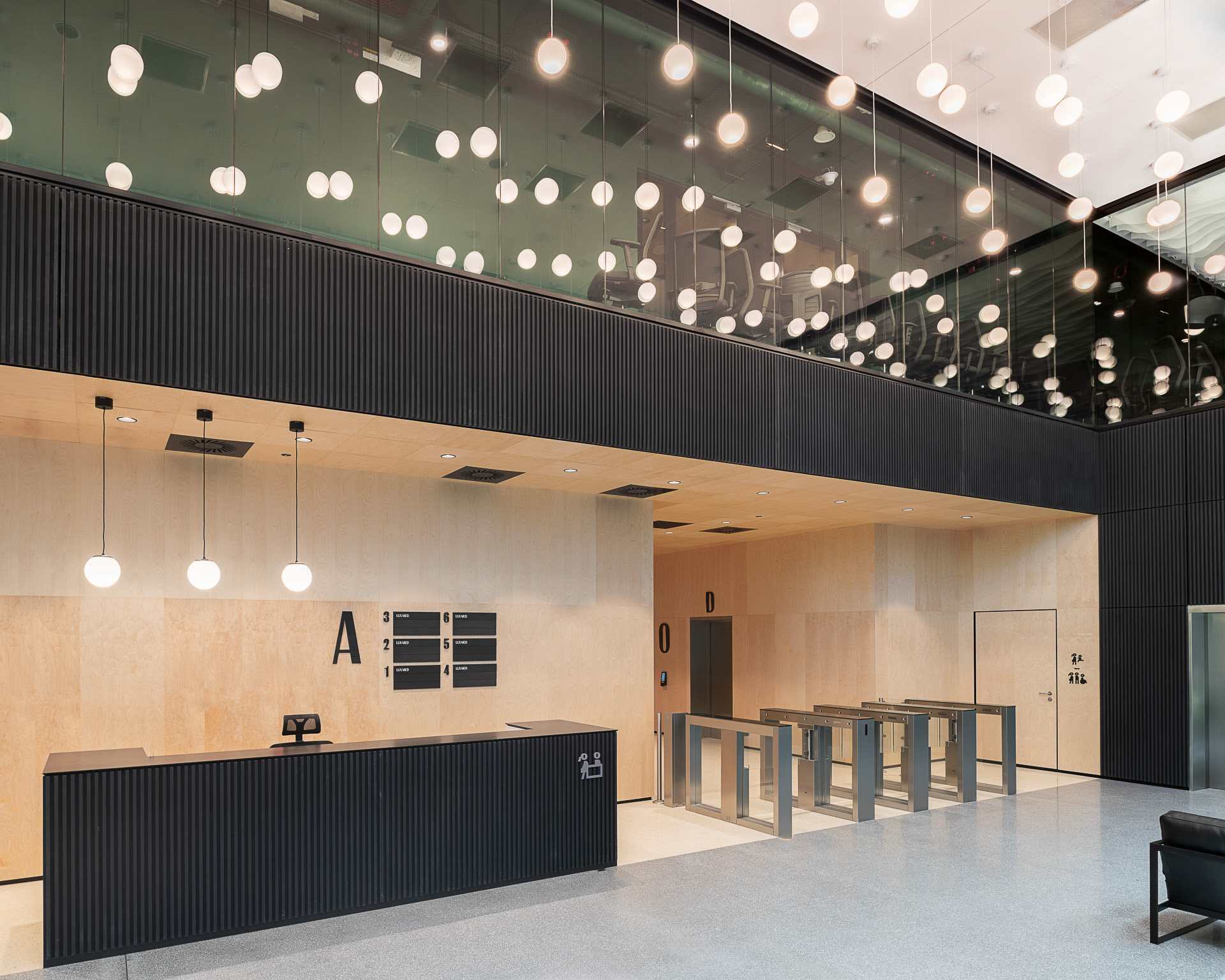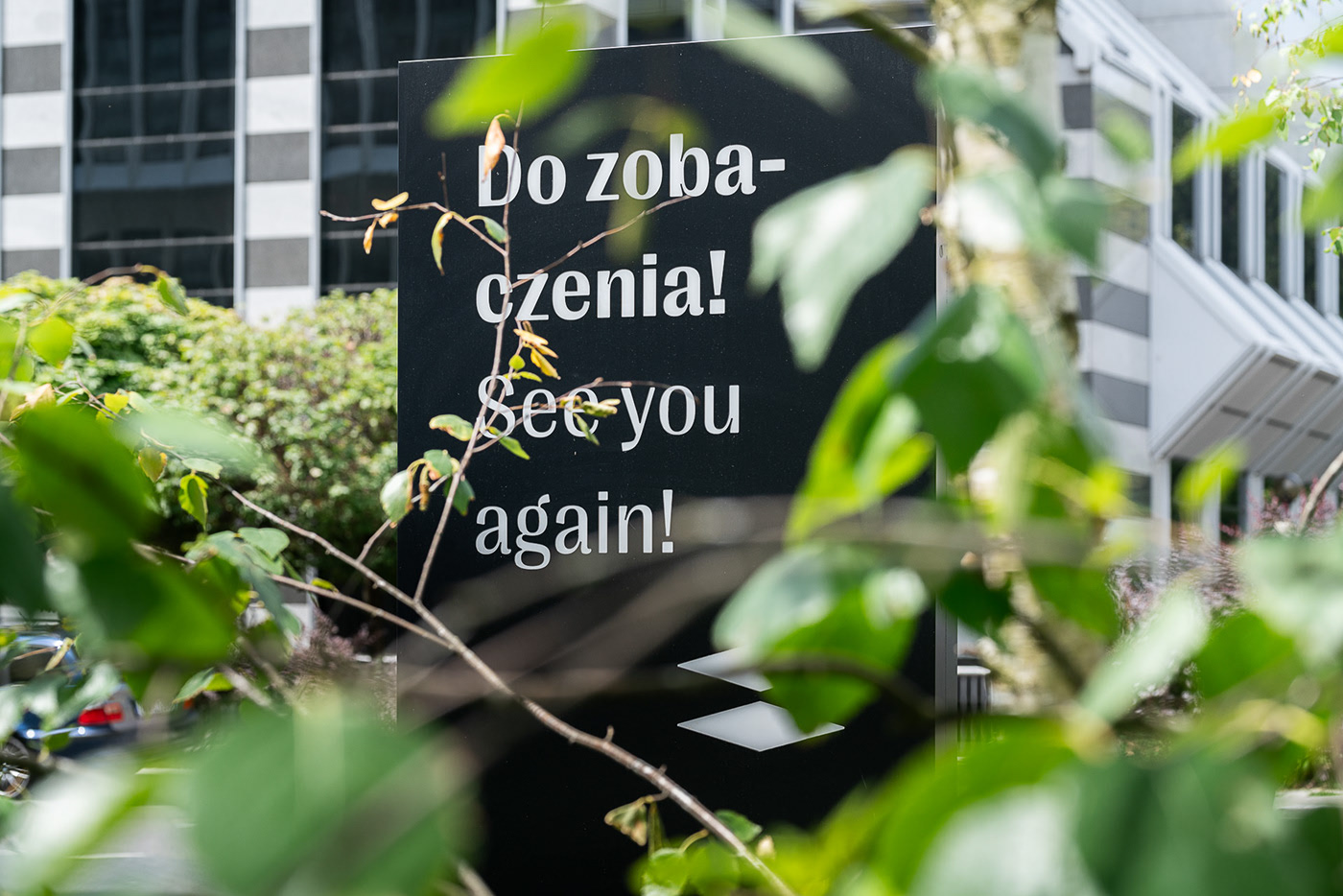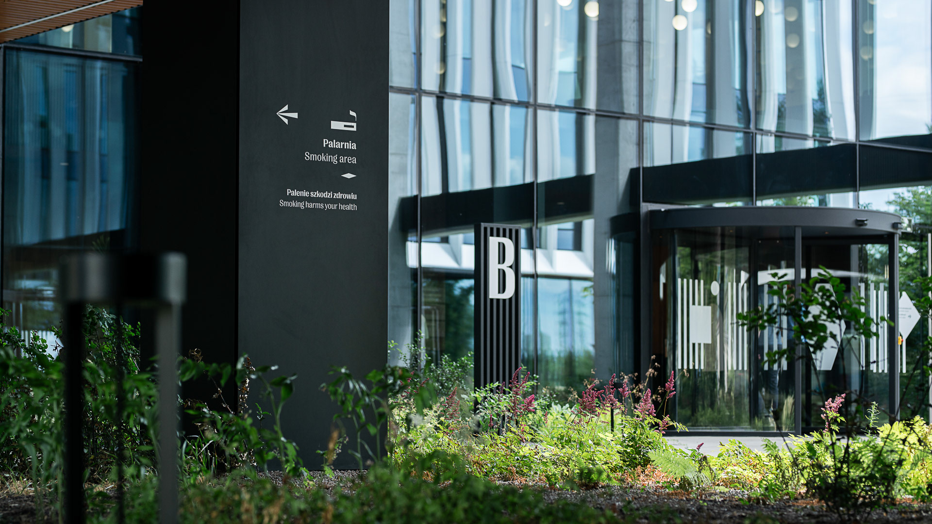 Lakeside is a complex of office buildings within the Mokotow district in Warsaw, Poland. It has already received BREEAM pre-certification at the “Outstanding” and WELL pre-certification at the “Gold” level at the design stage. WELL certification is the world’s first certification system in which buildings are evaluated for their impact on the health and well-being of the people who use them. It focuses on the use of a range of solutions that have a positive impact on the well-being, overall health, satisfaction and productivity of employees. Our wayfinding has become its complement. Graphics in common spaces build a welcoming atmosphere and make it easy for users to navigate the complex facility.