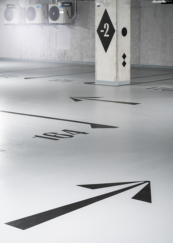 All graphics, signs and pictograms are closely interconnected. Strong, rhythmically arranged elements are dominant, and sophisticated detail plays a very important role. The color palette is strongly limited and natural, so that the space becomes even more user-friendly. The absence of vivid, juicy colors calms and unifies the interior and gives it a representative character. The project included the preparation of wayfinding for 2 buildings of the complex. A separate color palette was selected for each of them.