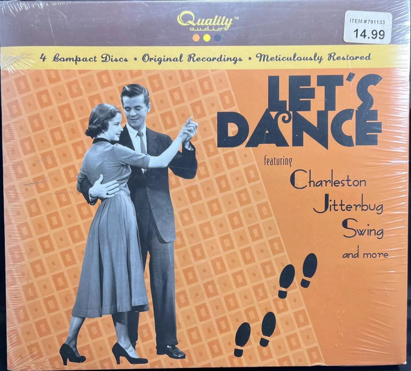 Let’s Dance featuring Charleston Jitterbug Swing is a 2004 four disc CD box set by Quality Audio, containing various “meticulously remastered” dance songs.