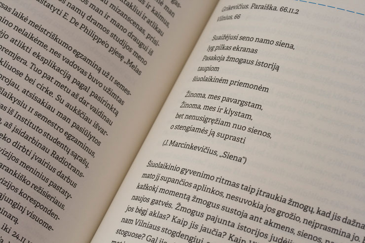 Epizodai paskutiniam filmui: Režisierius Almantas Grikevičius Contributed by TypeTogether on Mar 25th, 2014. Artwork published in 2013. Source: www.type-together.com License: All Rights Reserved. The book Epizodai paskutiniam filmui: Režisierius Almantas Grikevičius, by Aurimas Svedas, introduces the reader into the life of renowned Lithuanian filmmaker Almantas Grikevičius (1935–2011). Designer Tomas Mrazauskas used Adelle for texts and headlines throughout the publication. Source: www.type-together.com License: All Rights Reserved. Source: www.type-together.com License: All Rights Reserved. Source: www.type-together.com License: All Rights Reserved. Source: www.type-together.com License: All Rights Reserved. Source: www.type-together.com License: All Rights Reserved. Typefaces More about AdelleGet Adelle Formats Books (6463) Topics Film/TV (2008) Designers/Agencies Tomas Mrazauskas (8) Tagged withbook covers (5804)about book design (30)book interiors (3612)book spines (1583)biographies (119)Aurimas Svedas (1)Leidykla Vaga (1)filmmakers (3)Lithuanian (language) (28) Artwork location Lithuania (47) In SetsText Base (Jesús Morentin) (7) Post a comment Name Email – will not be published Website Your response Submit Comment More Adelle in use Deine Freizeit Berlin map2019Wiebke DaneContributed by Wiebke Dane Prague City Theater2012Lumir KajnarContributed by TypeTogether Hopes&Fears2015Leonard PengNick TreptsovSergii RodionovContributed by Stephen Coles Sponsor More in Film/TV Endless Poetry (2016) German movie posterc. 2017Miro DenckContributed by Florian Hardwig Star Wars – The Force Awakens2014Contributed by Rob Hudson Charli XCX – “360” music video2024Special Offer, Inc.Contributed by Lineto Operation Brutus (Czechoslovak movie poster)1972Milan GrygarContributed by Stephen Coles More in Books Ghost Stories by A.L. Furman (ed.)c. 1974unknownContributed by Florian Hardwig Greguerías by Ramón Gómez de la Serna (Rouge Gorge series, Éditions Cent Pages)2005SpMillotContributed by PampaType Team Staff Pick The Last Gang in Town by Aaron Chapman2016Oliver McPartlinContributed by Florian Hardwig Čovječuljci / Tiny peopleand Zvijezda koja čita / The Reading Starby Ula Reić2019Petar ReićIvana RadićRina BarbarićContributed by Vanja Andric More Fonts In Use Roxette – Have a Nice Day album art1999Karl-Magnus BoskeRoxetteContributed by Thomas Evensson Staff Pick Book covers from The Royal Tenenbaums2001unknownContributed by Stephen Coles Staff Pick Tate Etc. issue 44, Autumn 20182018Studio ArdContributed by Sarah Klassen Staff Pick American Manhood covers1952unknownContributed by Stephen Coles Staff Pick