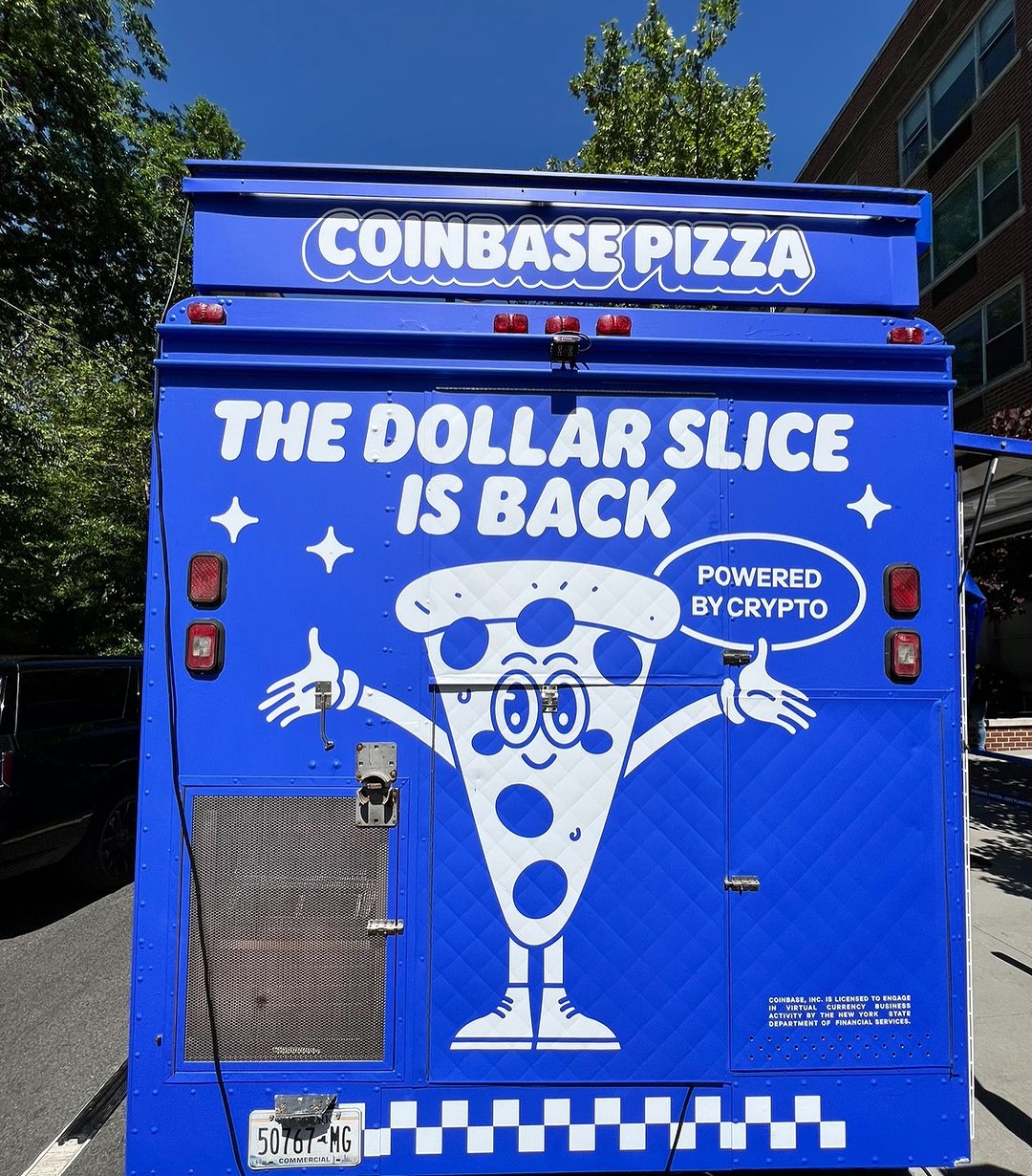 In the crypto world, Bitcoin Pizza Day is celebrated annually to commemorate the first known real-world transaction using Bitcoin. In May 2024, Coinbase marked the occasion by setting up a pizza truck and selling $1 slices in Washington Square, NYC.