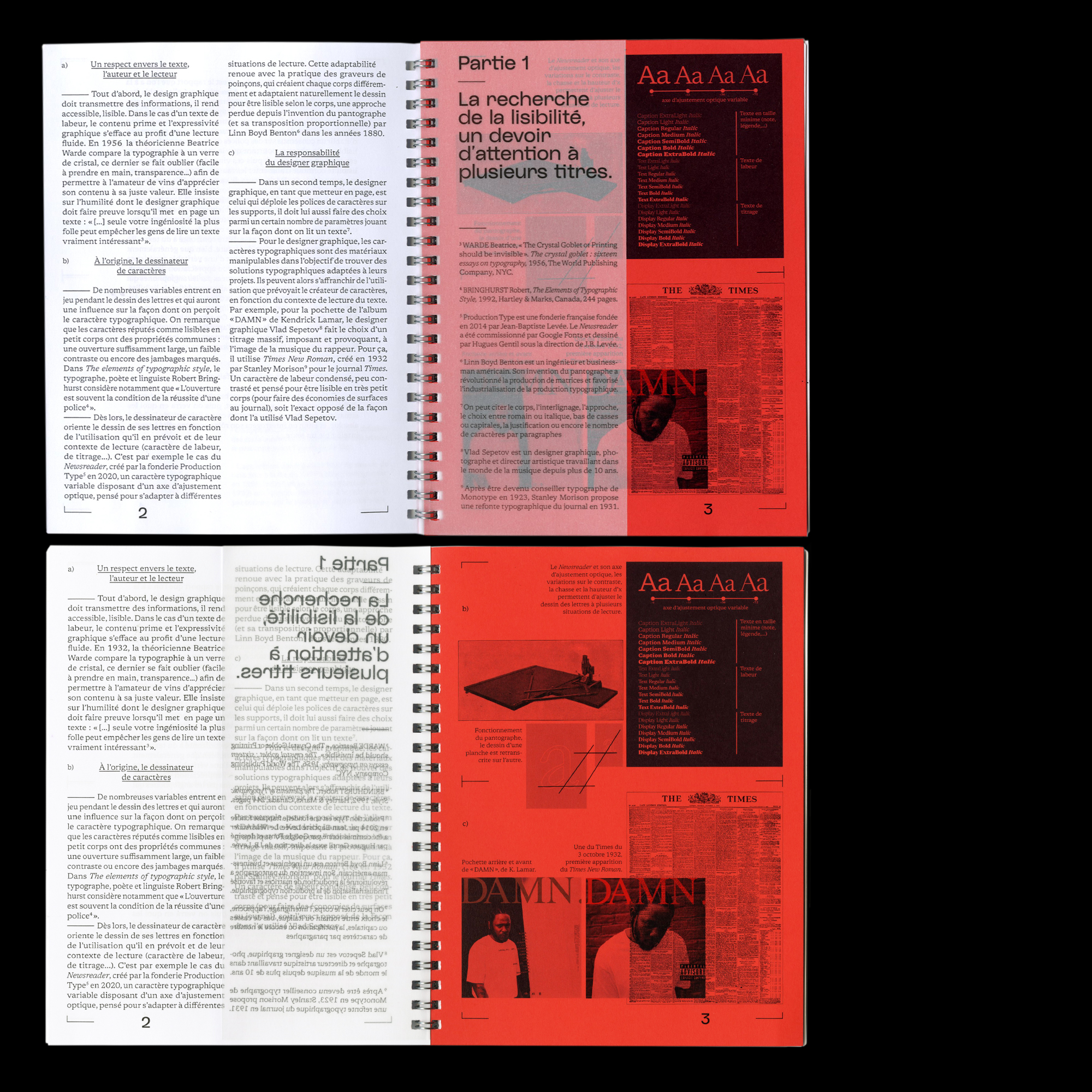 Sagace Medium used by me, Alexandre Créquer, for my school thesis L!S!BILITÉ, dealing with typographic legibility in graphic and type design. Sagace is paired with Newsreader from Production Type for body text and custom lettering for the title. Printed at Copyright 35, Rennes.