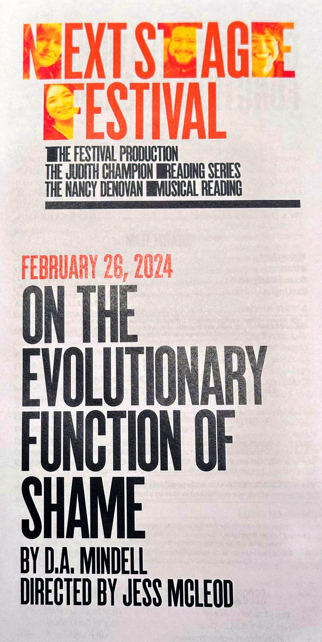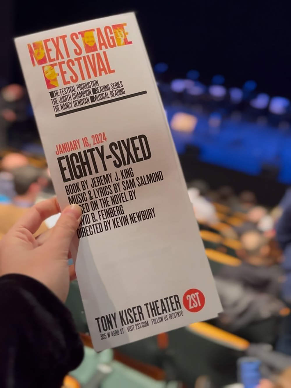 Continuing SecondStage’s commitment to living American playwrights, the 2024 2ST Next Stage Festival was held at the Tony Kiser theatre, winter 2023–24. The festival formalises 2ST’s artistic pipeline by providing support at crucial moments in a new play’s development. This year’s Next Stage Festival featured one-night only readings of new works by D.A. Mindell, Sarah Mantell, Kaela Mei-Shing Garvin, and Ross Golan as well as the world premiere of The Apiary by Kate Douglas.